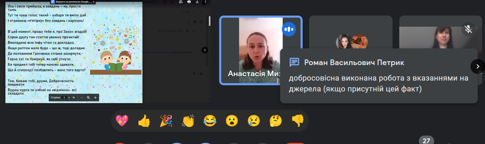 Жваве обговорення викликали не лише виступи молодих науковців, а й презентації відеопроєктів «Академічна доброчесність починається з тебе», що були представлені на секційному засіданні.