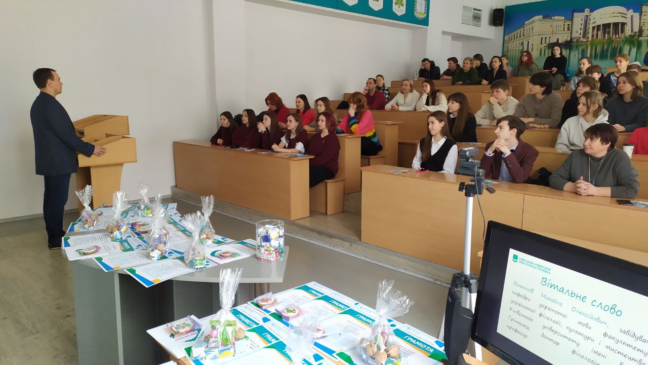 09 грудня 2023 року до дня народження Бориса Грінченка у межах реалізації проєкту "Українська мова в об’єктиві" кафедра української мови факультету української філології, культури та мистецтва організувала науково-пізнавальний захід "Герої мовного фронту" для молоді м. Києва.