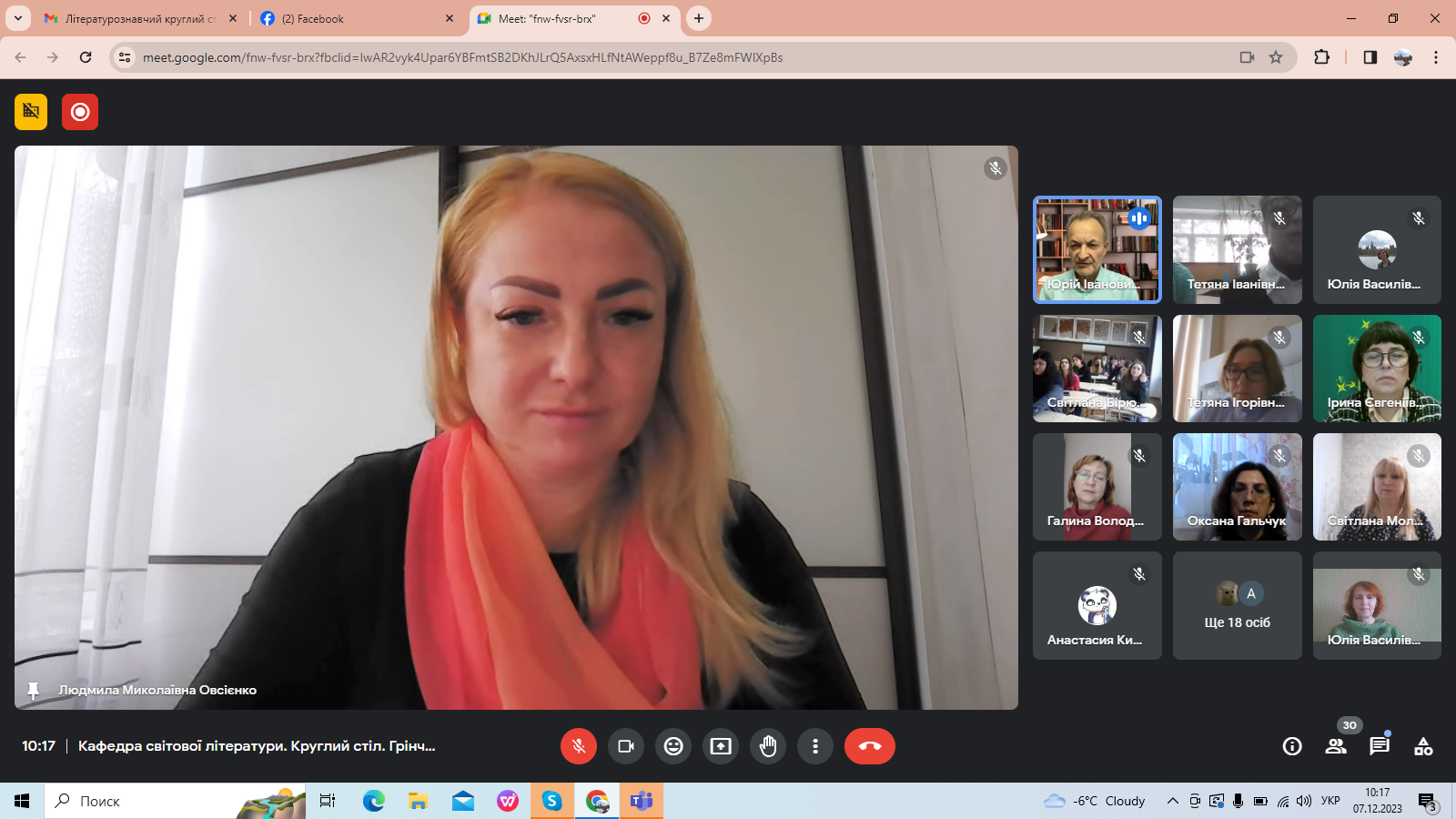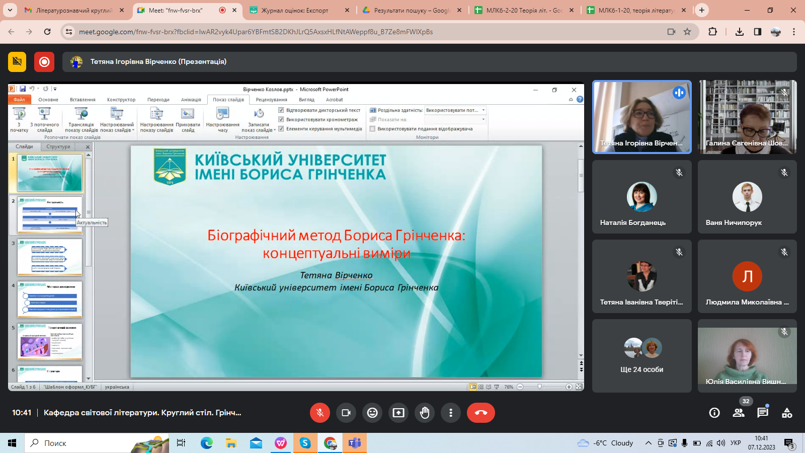 7 грудня 2023 року на Факультеті української філології, культури і мистецтва в межах Грінченківської декади, присвяченої 160-річчю з дня народження Бориса Грінченка, відбувся Всеукраїнський літературознавчий круглий стіл (з міжнародною участю) «Грінченко-енциклопедист». З вітальним словом до присутніх звернулася Ірина Руснак, декан факультету, професор, доктор філологічних наук. Привітали учасників заходу Людмила Овсієнко, заступник декана з наукової роботи, професор, доктор педагогічних наук; Юрій Ковбасенко, президент Української асоціації викладачів зарубіжної літератури, професор, кандидат філологічних наук, заслужений працівник освіти; Галина Бітківська, завідувач кафедри світової літератури, доктор філологічних наук, доцент.