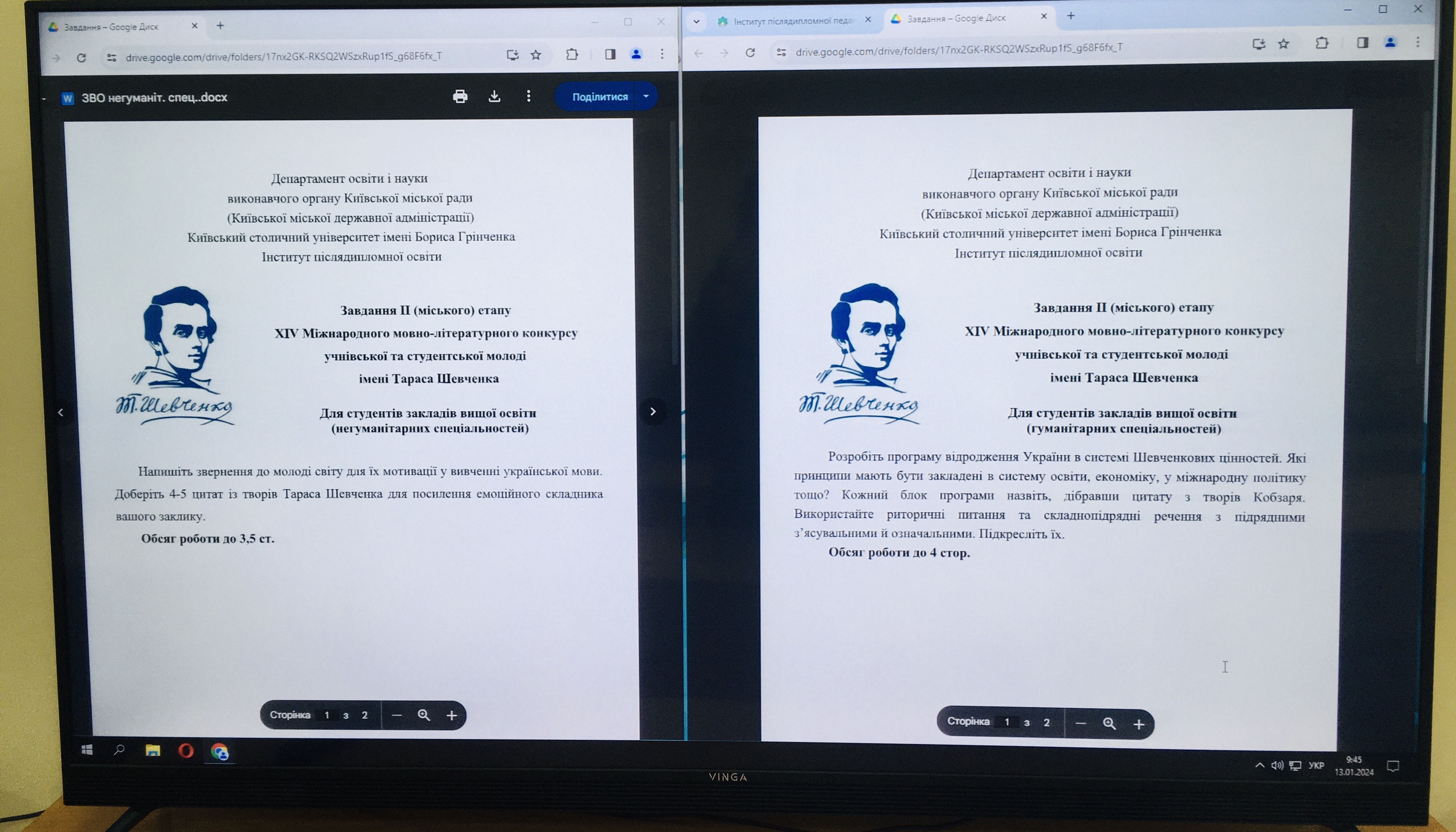13 січня 2024 року відбувся II етап XIV Міжнародного мовно-літературного конкурсу учнівської та студентської молоді імені Тараса Шевченка. Участь у конкурсі – це та мить, коли його організатори, студенти, члени журі не лише вшановують постать Тараса Григоровича, а наново переосмислюють спадщину письменника, актуалізують цінності для сучасного суспільства. Цьогоріч студенти-філологи розробляли програму відродження України в системі Шевченкових цінностей. Програма мала відображати принципи, які мають бути закладені в систему освіти, економіку, міжнародну політику. Студенти-грінченківці нефілологічних спеціальностей мали інше завдання – написати звернення до молоді світу для їх мотивації у вивченні української мови. Така проєктна діяльність якнайкраще увиразнює, що вічне слово Кобзаря актуальне й нині.
