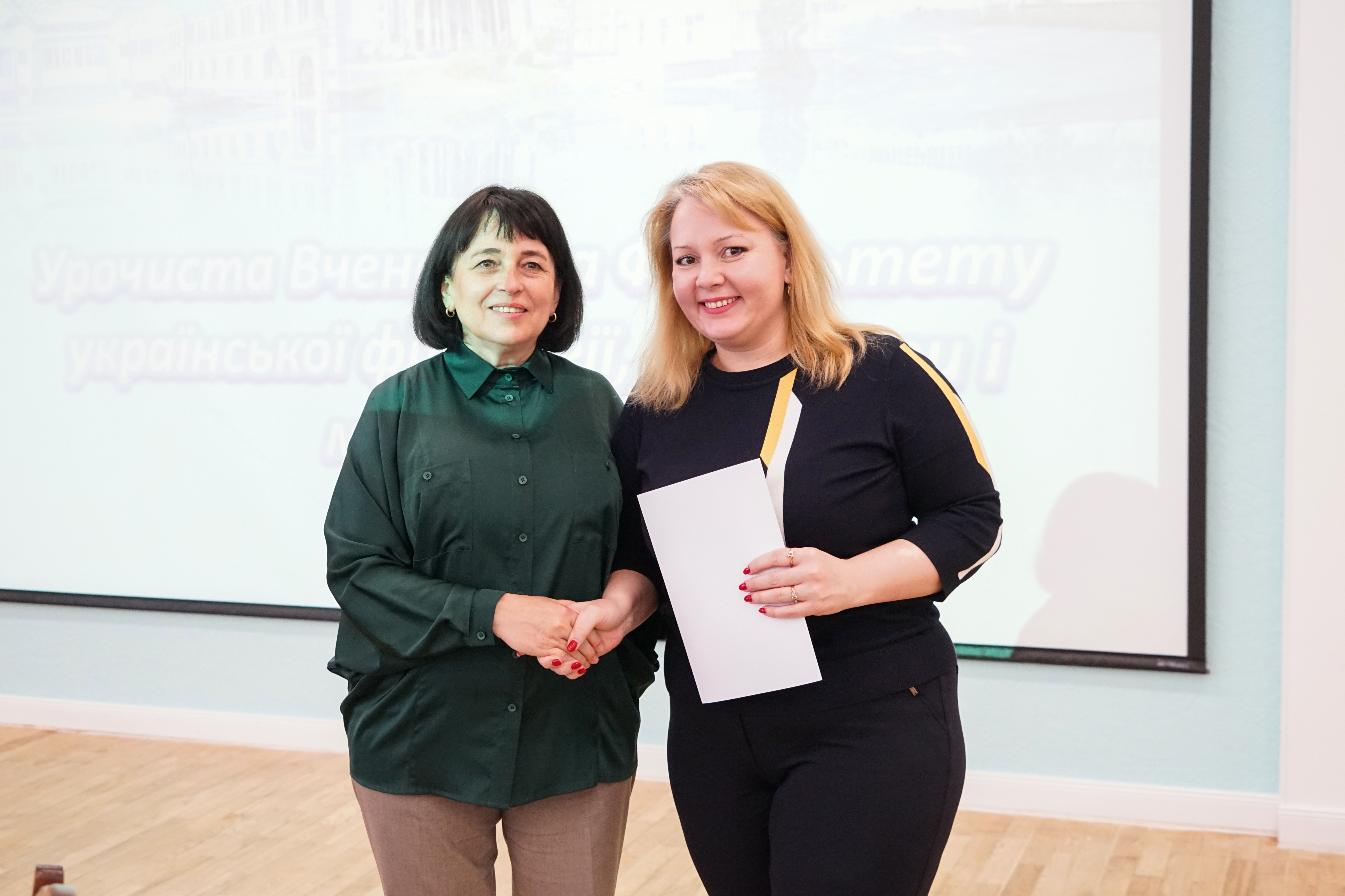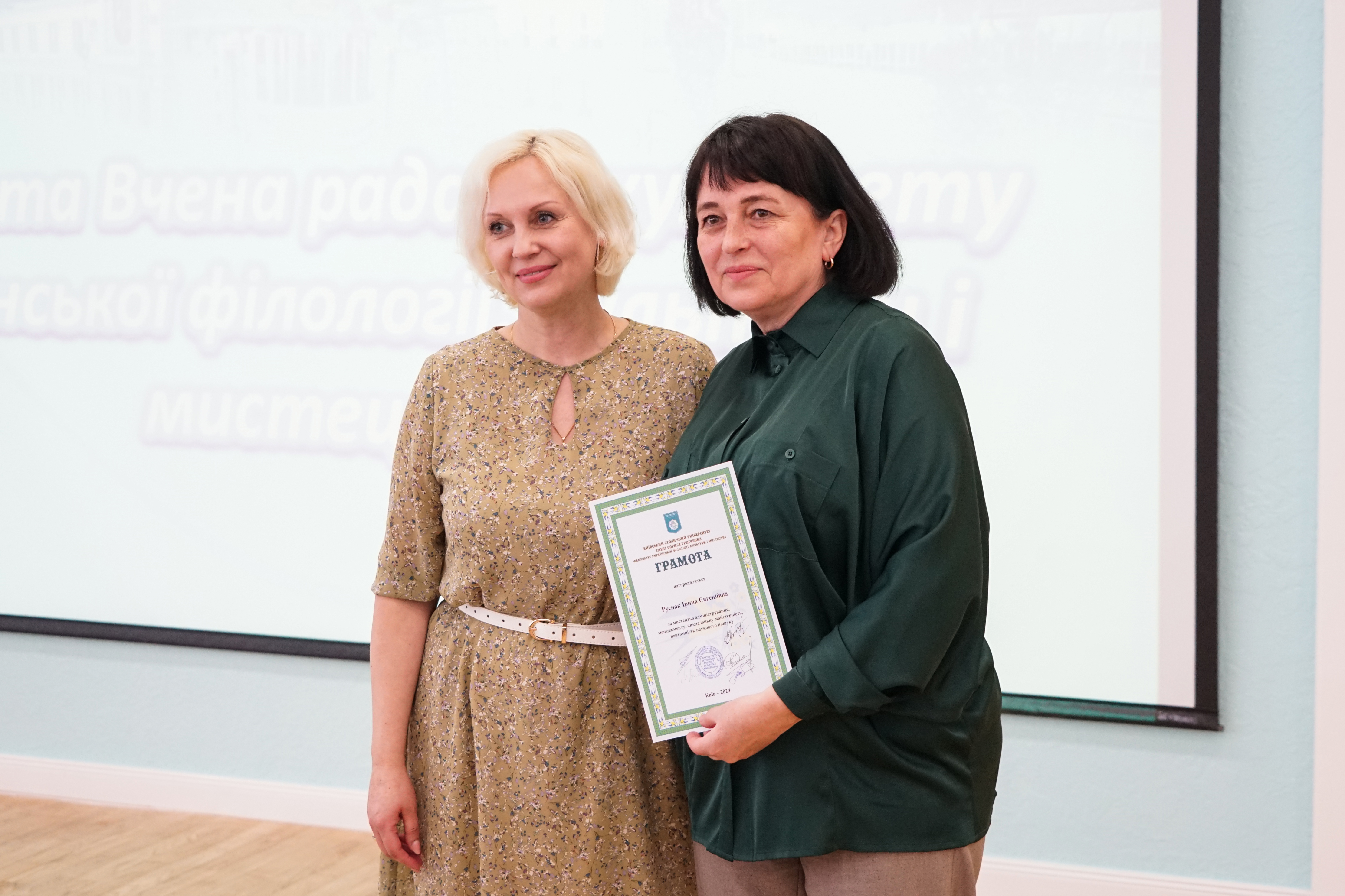 Відзначаючи День Факультету української філології, культури і мистецтва, підтримуючи прагнення вдосконалюватися, рухатися вперед, долати перешкоди, досягати успіхів оголосили грамоти і подяки присутнім науковим, науково-педагогічним, педагогічним представникам Факультету: Ірині Руснак, Юлії Вишницькій, Оксані Гальчук, Юрію Ковбасенку, Тетяні Тверітіновій, Сніжані Жигун, Олені Бондаревій, Тетяні Вірченко, Наталії Блохіній, Світлані Євтушенко, Руслані Новіковій, Євгенові Малюку, Ігореві Стамболу, Аллі Мажарі, Марії Макаровій, Денисові Вітковському, Тетяні Видайчук, Олександрові Стишову, Валентині Заєць, Тетяні Вінтонів, Раїсі Дружененко, Наталії Лахно, Ірині Саєвич, Марії Бойко, Людмилі Овсієнко, Світлані Горобець, Тетяні Саврасовій-В’юн, Марині Бойко, Юлії Потарікіній, Оксані Коваль.
