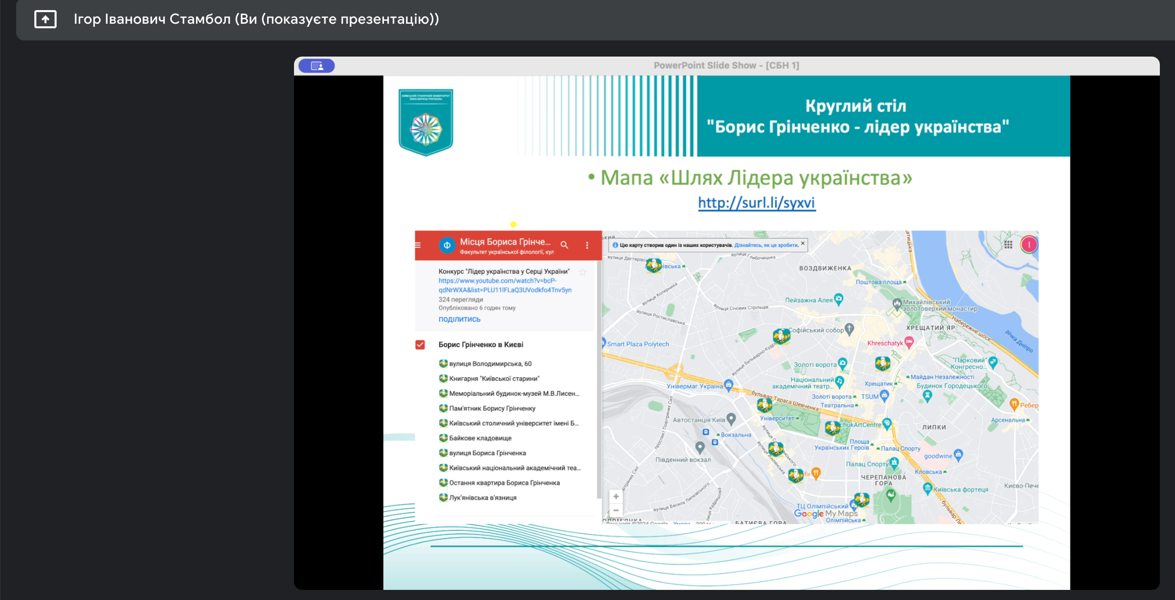 Модератор круглого столу, Ігор Стамбол, кандидат історичних наук, доцент кафедри інформаційних комунікацій Факультету української філології, культури і мистецтва, розпочав засідання круглого столу і проаналізував результати минулорічного Конкурсу відеоробіт «Лідер українства» з-поміж студентської молоді й абітурієнтів України та оголосив умови й особливості проведення наступного етапу Конкурсу в 2024 році.