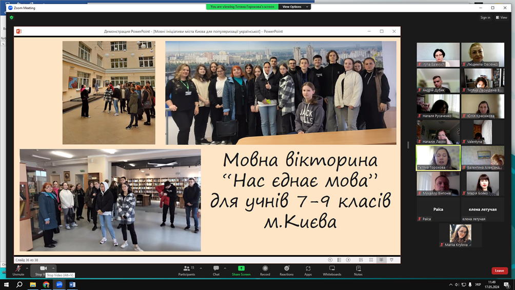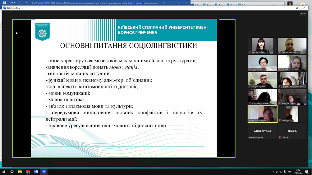 17 травня 2024 року в межах Фестивалю науки кафедра української мови Факультету української філології, культури і мистецтва Київського столичного університету імені Бориса Грінченка організувала й провела круглий стіл «Мовно-інформаційний простір м. Києва». Метою заходу стало узагальнення напрацювань членів кафедри у сфері різноаспектного вивчення мовної ситуації столиці України.