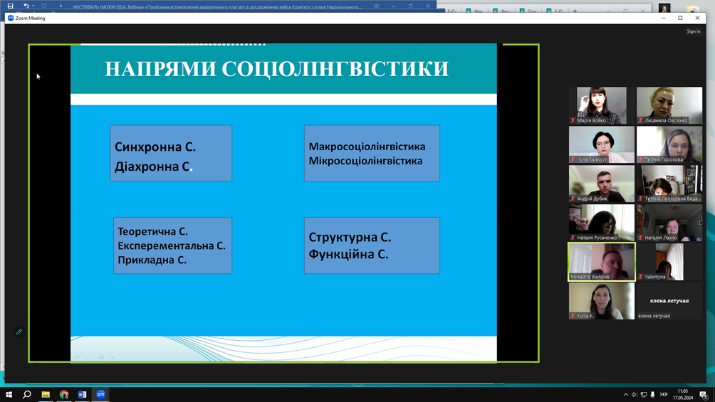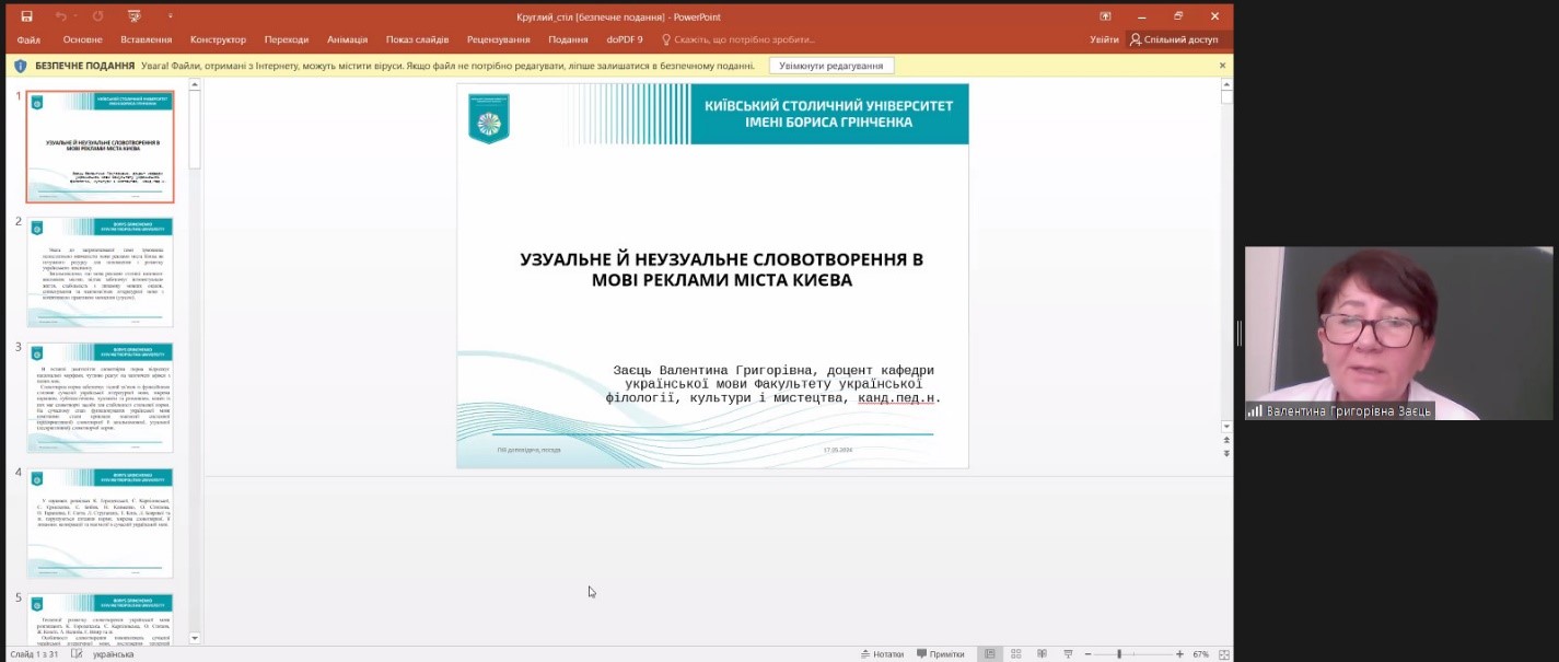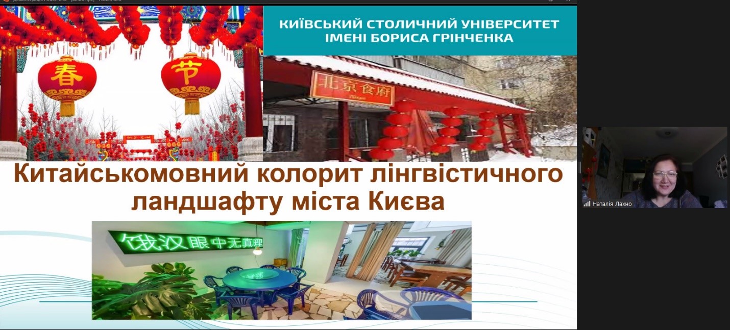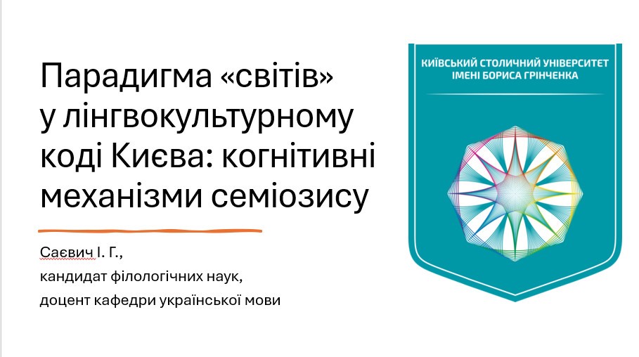 Проблемні питання прагматики лінгвокультурного коду м. Києва у виступах висвітлили: Ірина Саєвич, доцент кафедри української мови Факультету української філології, культури і мистецтва Київського столичного університету імені Бориса Грінченка, кандидат філологічних наук, доцент («Парадигма «світів» у лінгвокультурному коді Києва: когнітивні механізми семіозису»); Марія Крилова, здобувачка ІV року навчання Факультету української філології, культури і мистецтва Київського столичного університету імені Бориса Грінченка («Прецедентні імена в лінгвокультурному коді Києва: Владислав Городецький»); Борис Корж, магістрант ІІ року навчання Факультету української філології, культури і мистецтва Київського столичного університету імені Бориса Грінченка («Концепт ЗИМА у семантичній структурі віршів сучасних київських поетів»); Андрій Дубик, аспірант І року навчання спеціальності «035 Філологія» Факультету української філології, культури і мистецтва Київського столичного університету імені Бориса Грінченка («Лексичні засоби вираження зв’язності в тексті пісні «Дике поле» виконавця Yarmak»); Катерина Сосєдко, аспірантка ІІ року навчання спеціальності «035 Філологія» Факультету української філології, культури і мистецтва Київського столичного університету імені Бориса Грінченка («Семантико-функційний потенціал синтаксичних омонімів у мовленні депутатів Київради»).
