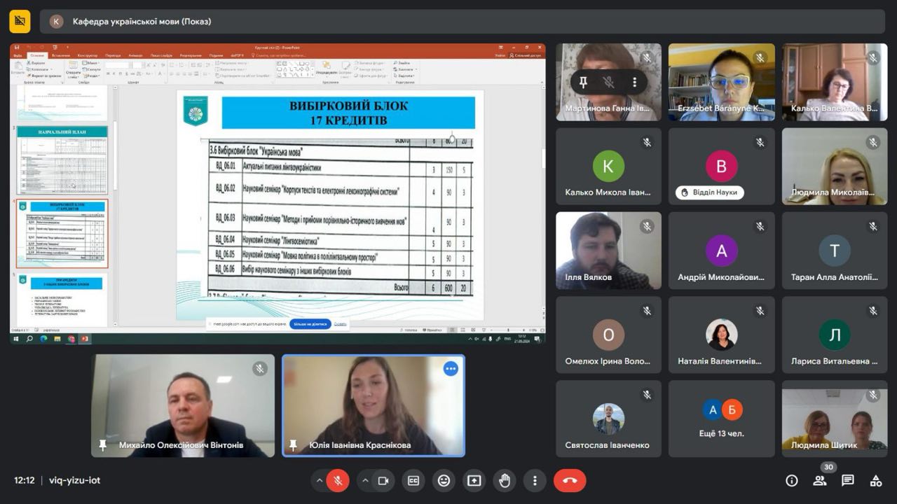 21 травня 2024 р. кафедра української мови Факультету української філології, культури і мистецтва Київського столичного університету імені Бориса Грінченка разом із Черкаським національним університетом імені Богдана Хмельницького, Волинським національним університетом імені Лесі Українки, Закарпатським угорським інститутом імені Ф. Ракоці ІІ, Сеґедським університетом (Угорщина), Будапештським університетом імені Лоранда Етвеша (Угорщина), Бакинським слов’янським університетом (Азербайджан) провела науково-теоретичний семінар для аспірантів.