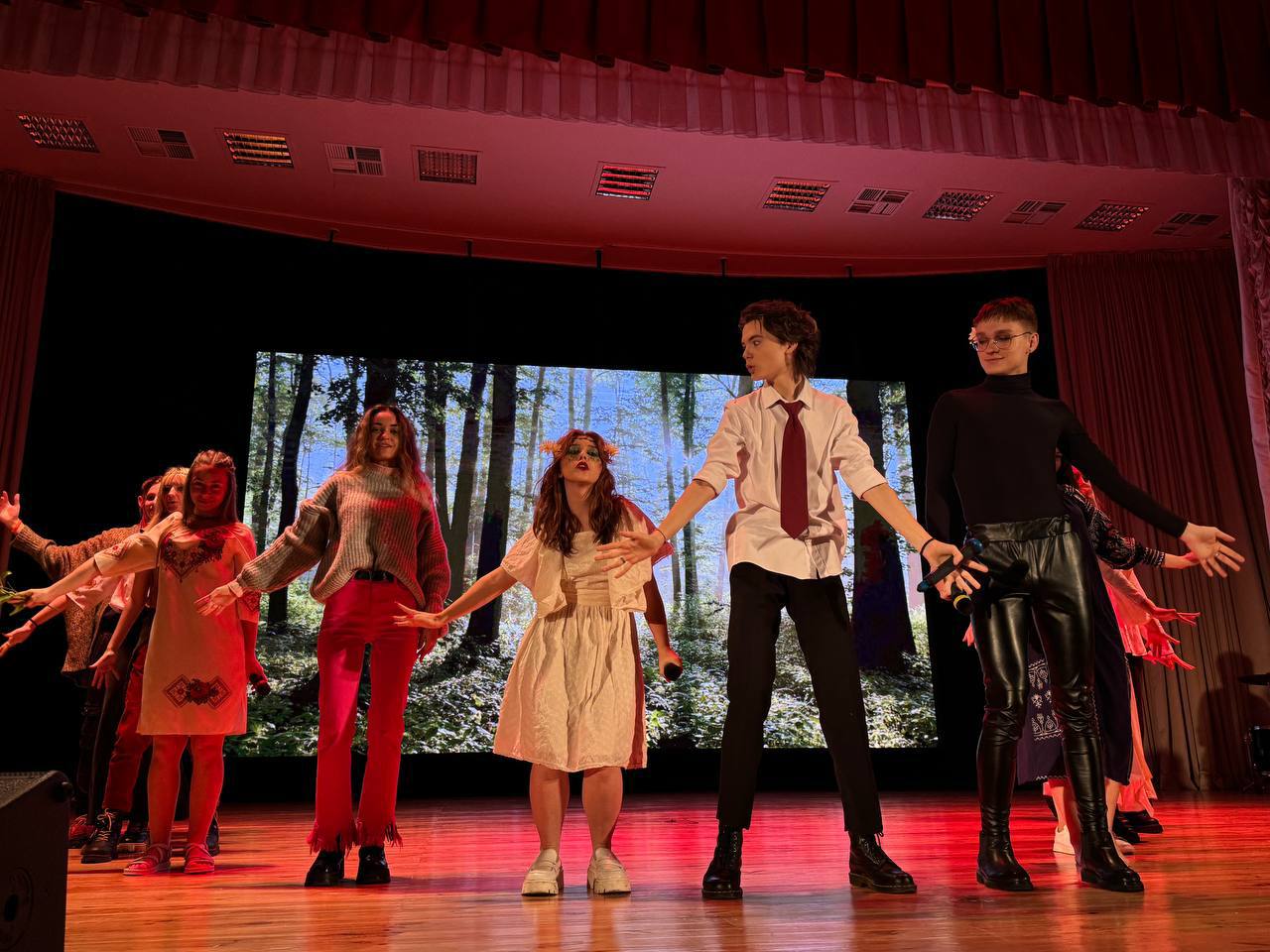 Театралізована частина виступу була доповнена яскравими костюмами, які вдало підкреслювали загальний задум. Також студенти продемонстрували високий рівень акторської майстерності, завдяки чому їхній виступ викликав жвавий інтерес у глядачів.
