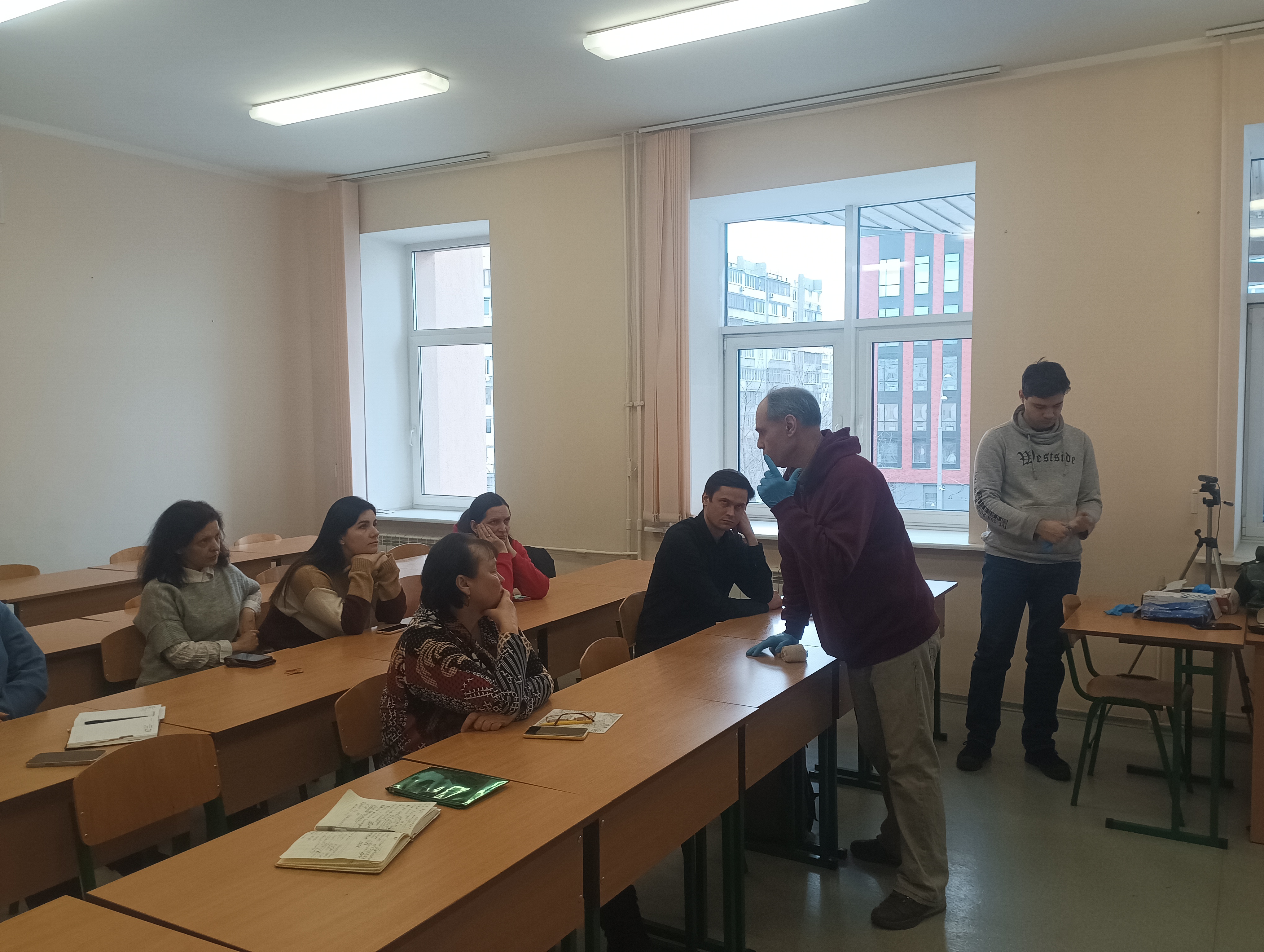 05 лютого 2025 року співробітники Факультету української філології, культури і мистецтва та інших структурних підрозділів Київського столичного університету імені Бориса Грінченка долучилися до тренінгу «Домедична допомога», проведеного фахівцями з тактичної медицини підрозділу Цивільного та РХБ захисту ДФТГ № 42 м. Києва «Легіон Оболонь» Оксаною Мусякевич, Сергієм Нечаєм, Олесем Папієм.