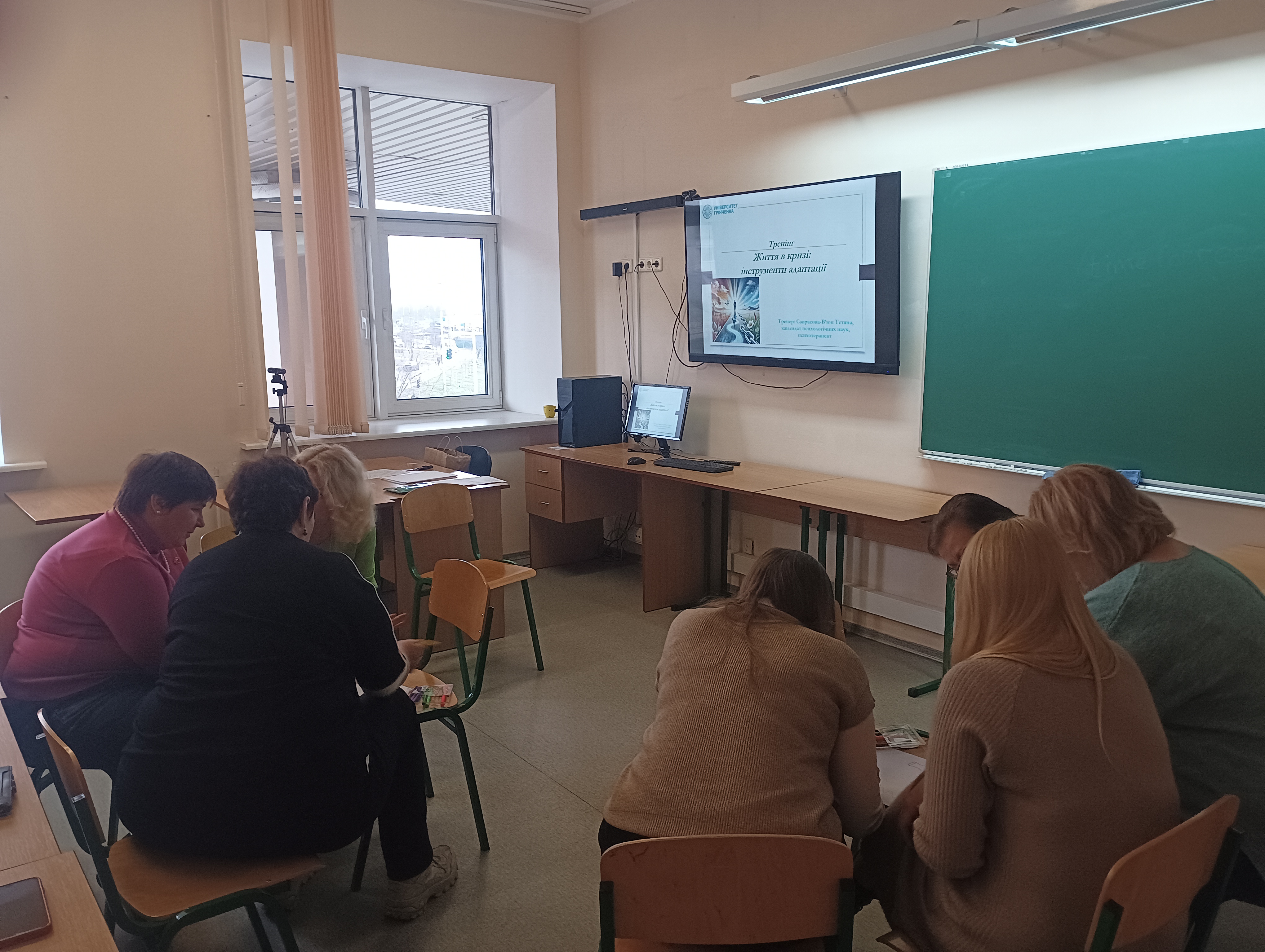 06 лютого 2025 року співробітники Факультету української філології, культури і мистецтва та інших структурних підрозділів Київського столичного університету імені Бориса Грінченка долучилися до тренінгу «Життя в кризі: інструменти адаптації» (тренер – Тетяна Саврасова-В’юн, кандидат психологічних наук, доцент, доцент кафедри української літератури, компаративістики і грінченкознавства).