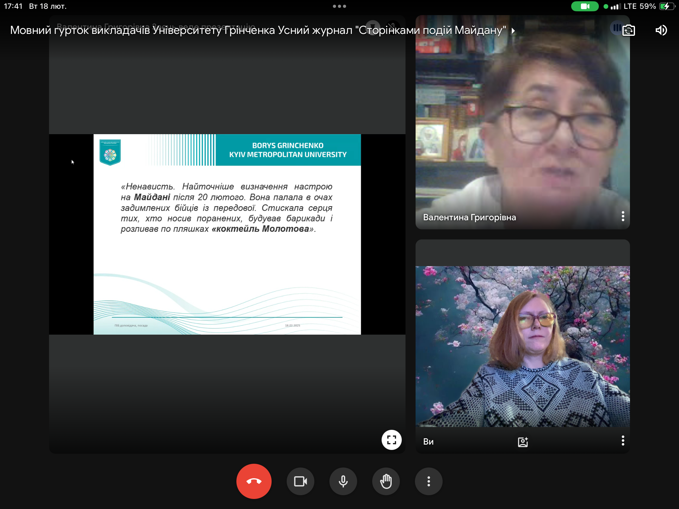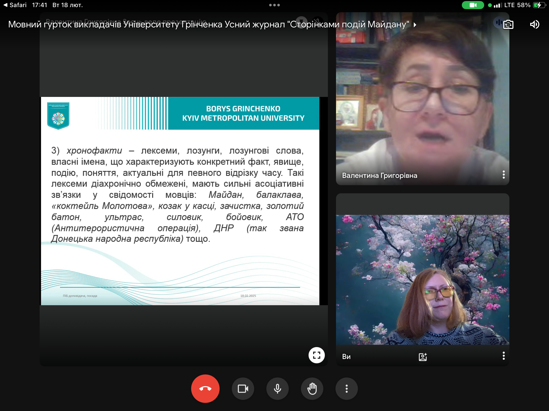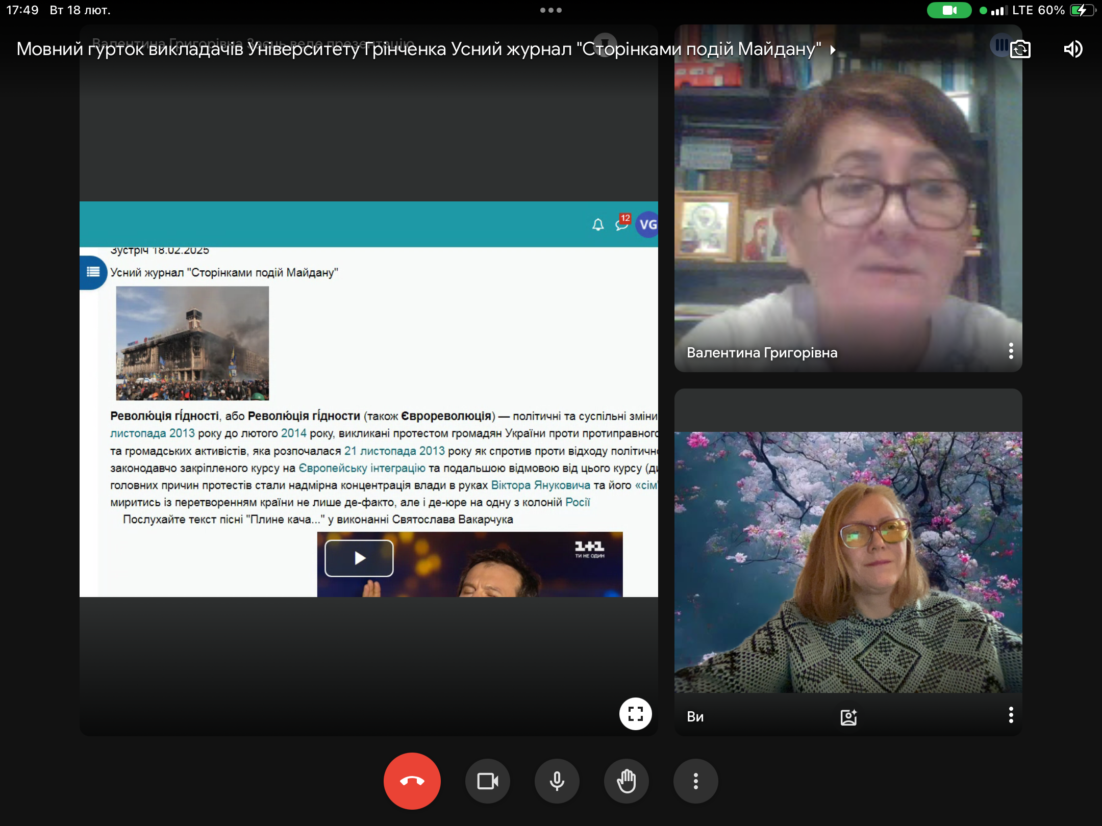 З нагоди цього дня було проведене тематичне засідання мовного гуртка (керівник - Валентина Григорівна Заєць, доцент кафедри української мови, кандидат педагогічних наук). На зустрічі учасники слухали усний журнал "Сторінками подій Майдану", розглядали й аналізували лексику, що зафіксована у словнику учасників протистояння Революції Гідности.