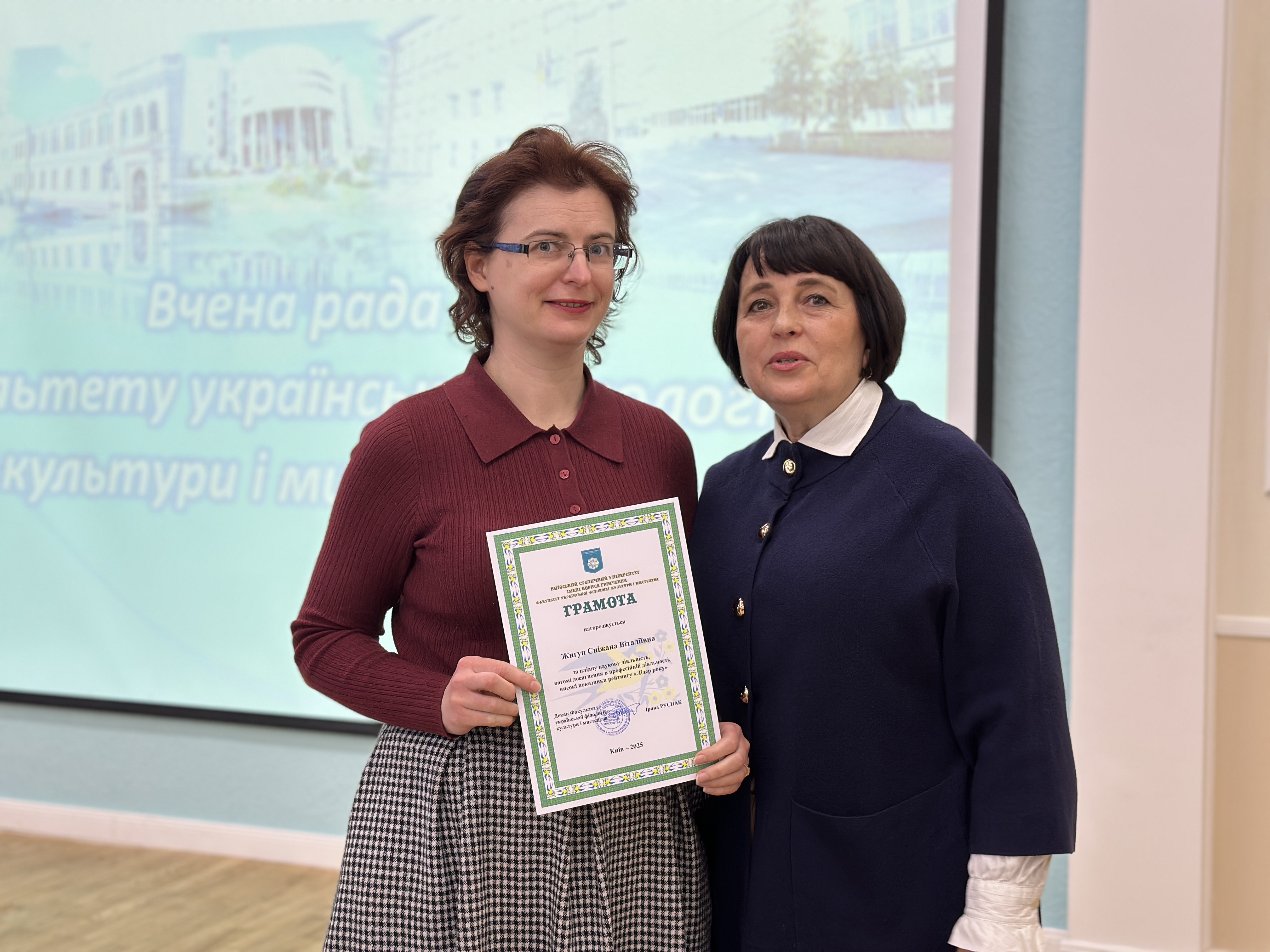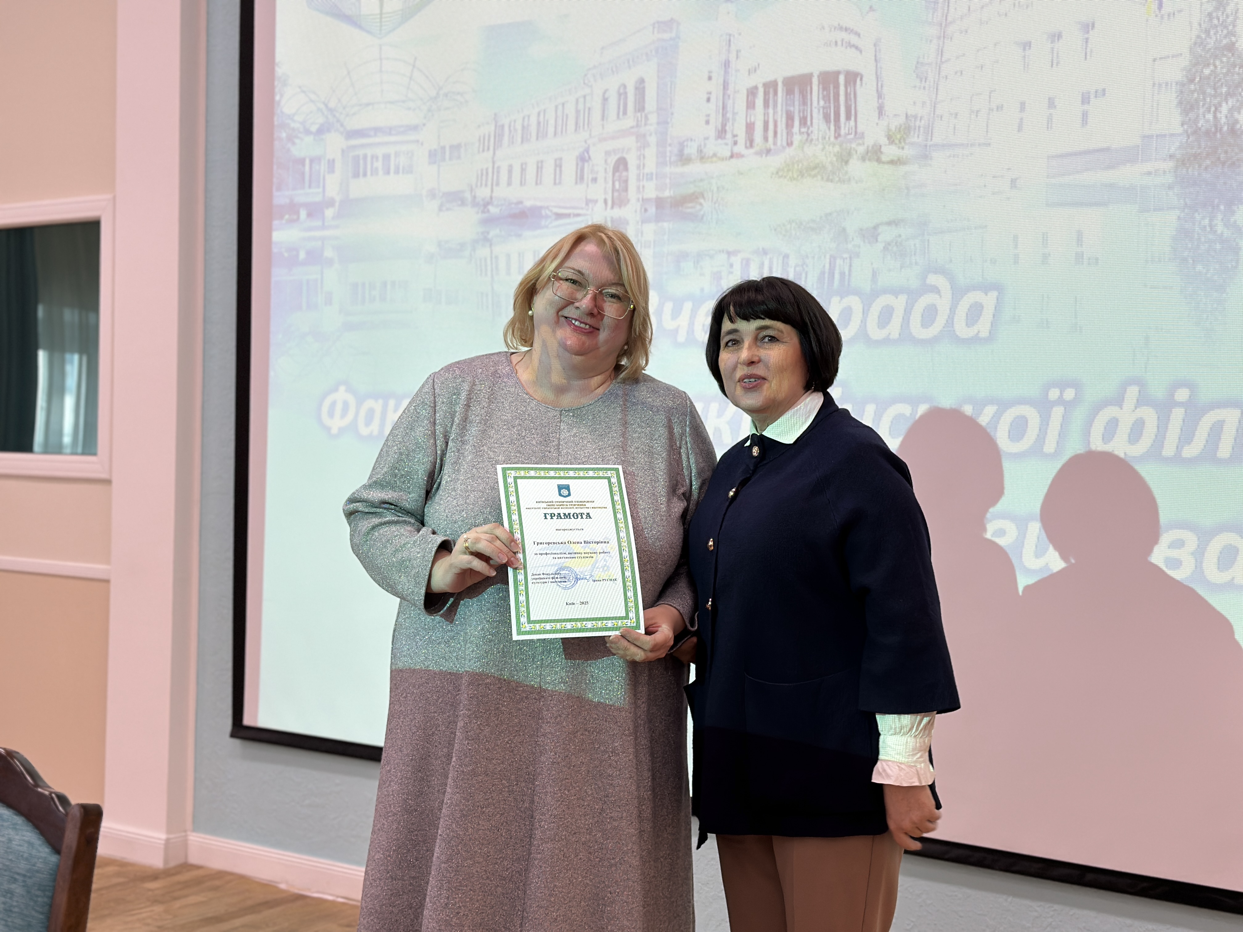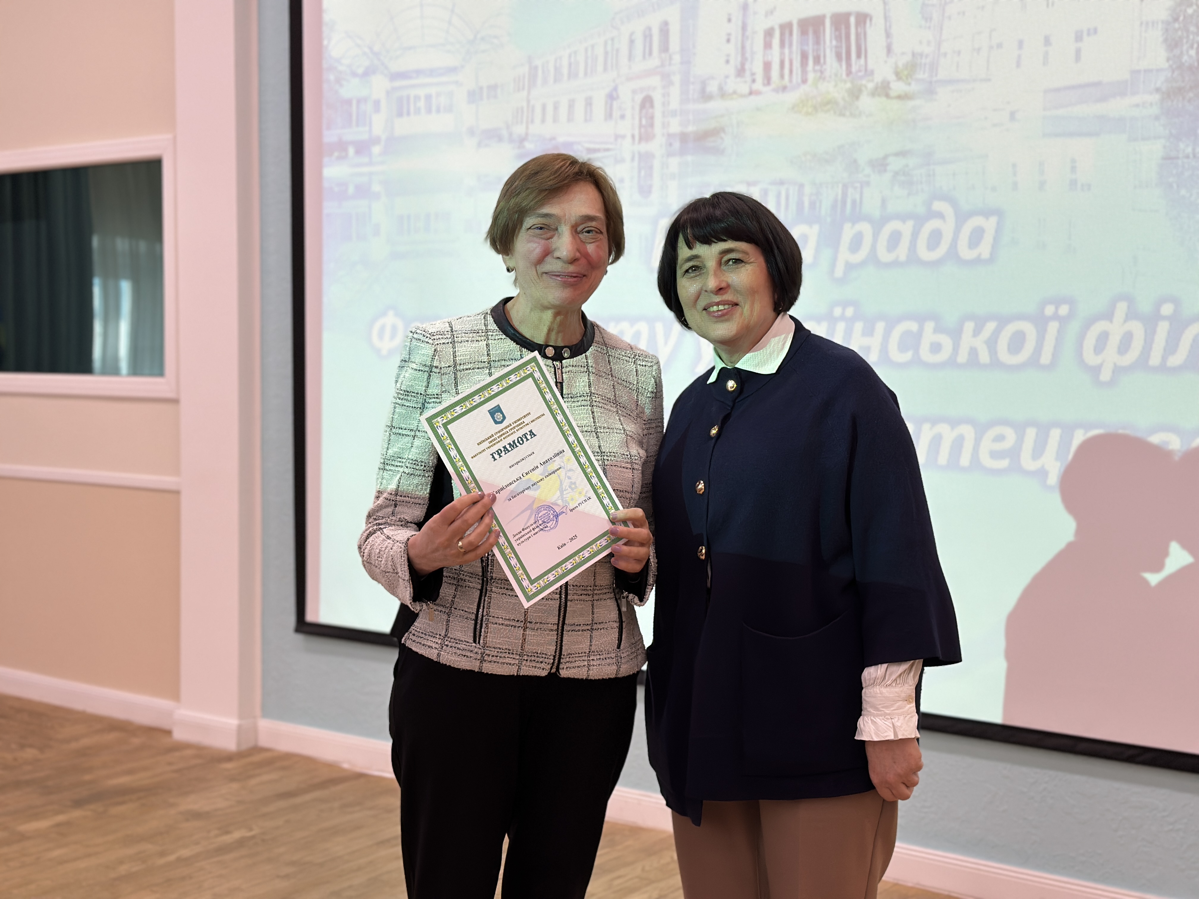 Під час засідання Вченої ради відбулося вручення подяк і грамот партнерам за багаторічну співпрацю у підготовці фахівців з української філології, інформаційної, бібліотечної та архівної справи, аудіовізуального мистецтва та виробництва. З-поміж нагороджених – наші партнери: