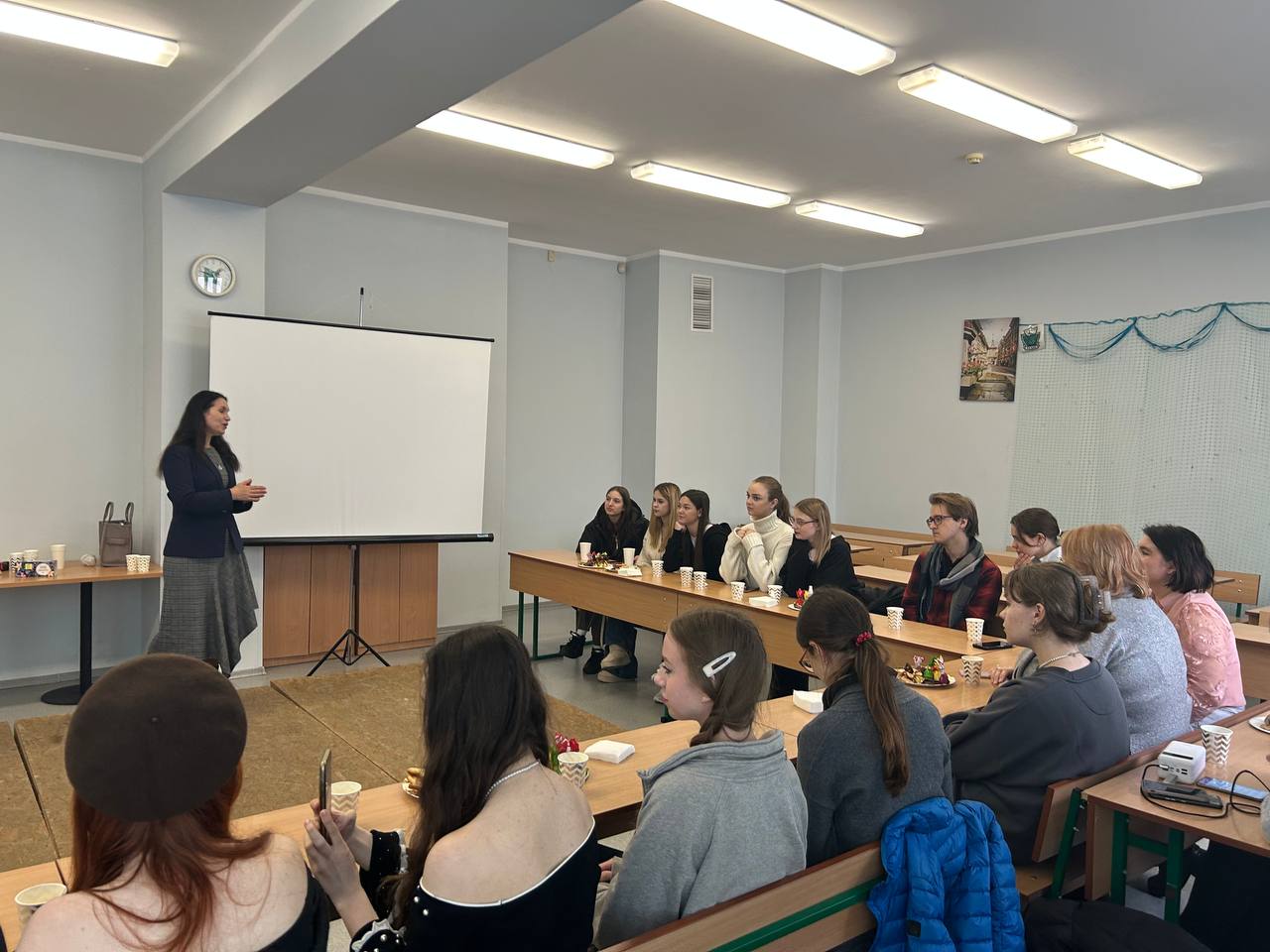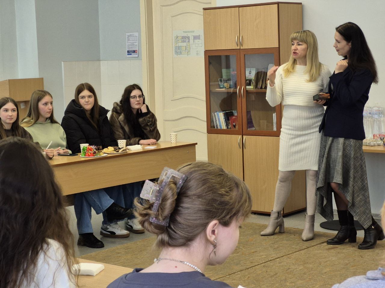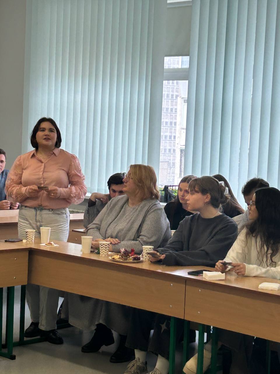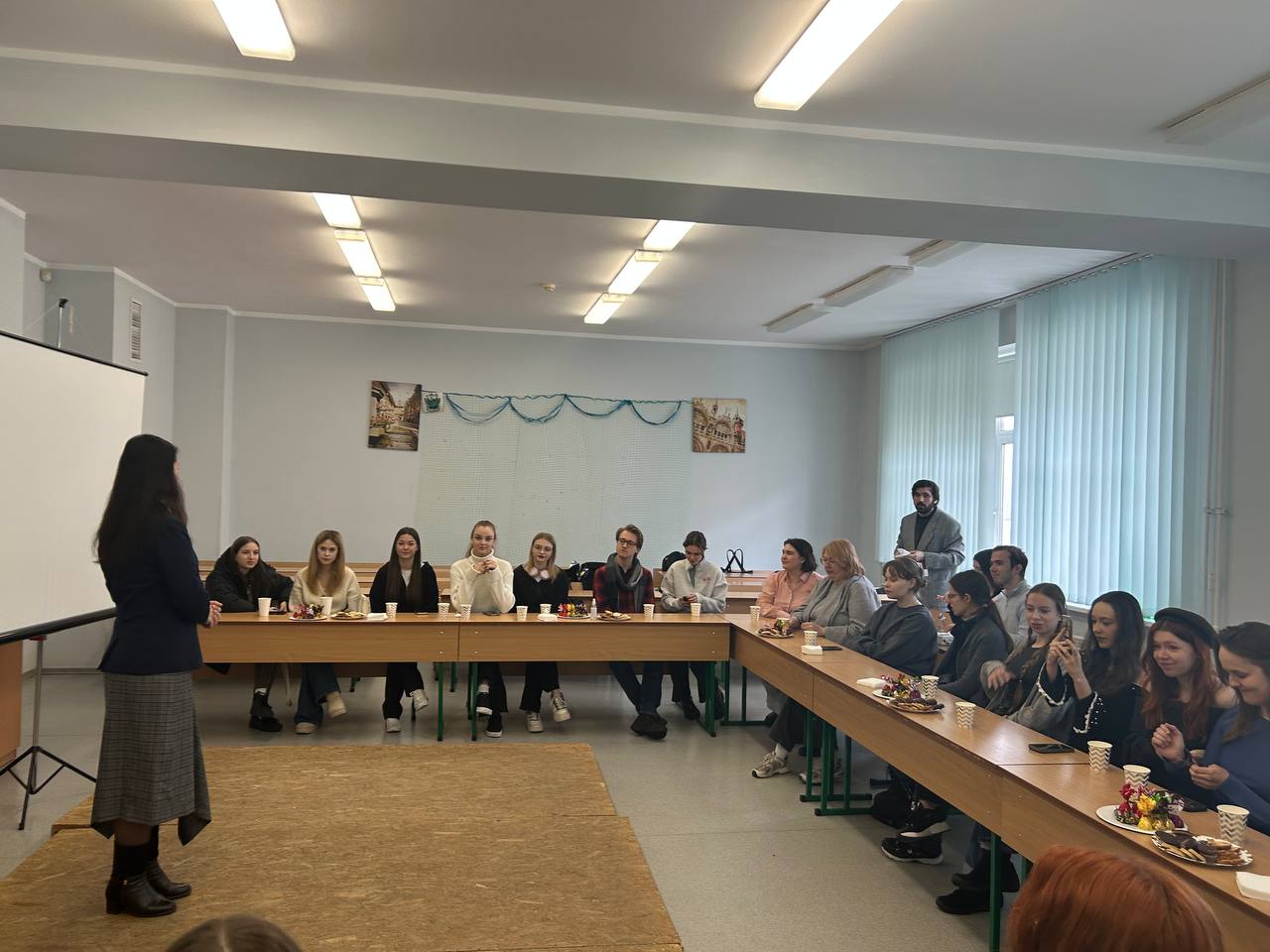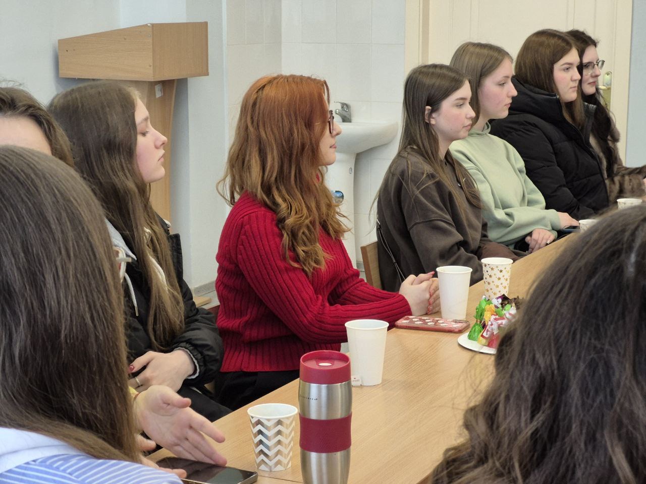Замість звичних лекцій панувала тепла, невимушена атмосфера розмови. За чашкою чаю та смаколиками викладачі й студенти ділилися думками про наболіле, обговорювали важливі питання навчання, професійного зростання та нові ідеї для спільних проєктів. Цікавим моментом стало використання метафоричних карт, що допомогло учасникам глибше зрозуміти себе та свої прагнення.