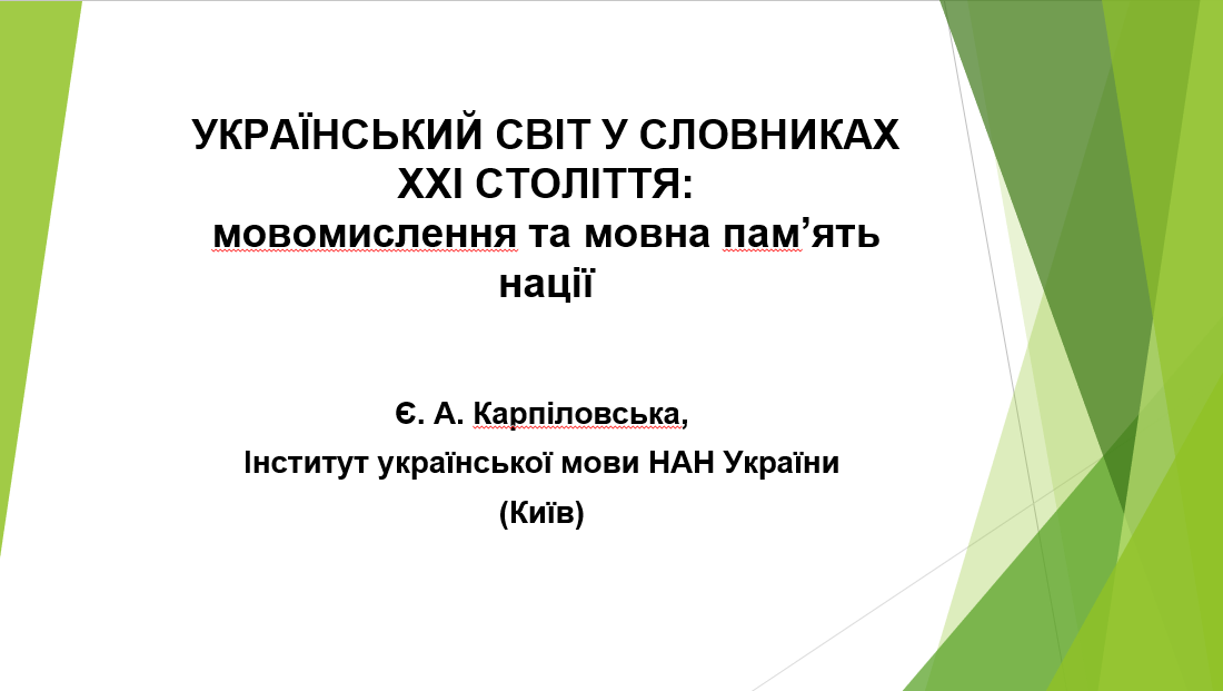 Справжнім подарунком для присутніх стала і лекція Є. А. Карпіловської «Український світ у словниках ХХІ століття: мовомислення і мовна пам’ять нації», присвячена актуальним і важливим для сучасної лінгвістики питанням: мовної пам’яті, значення національно і культурно маркованої лексики для збереження української ідентичності та всебічного моделювання картини українського мовомислення в словниках ХХІ століття.