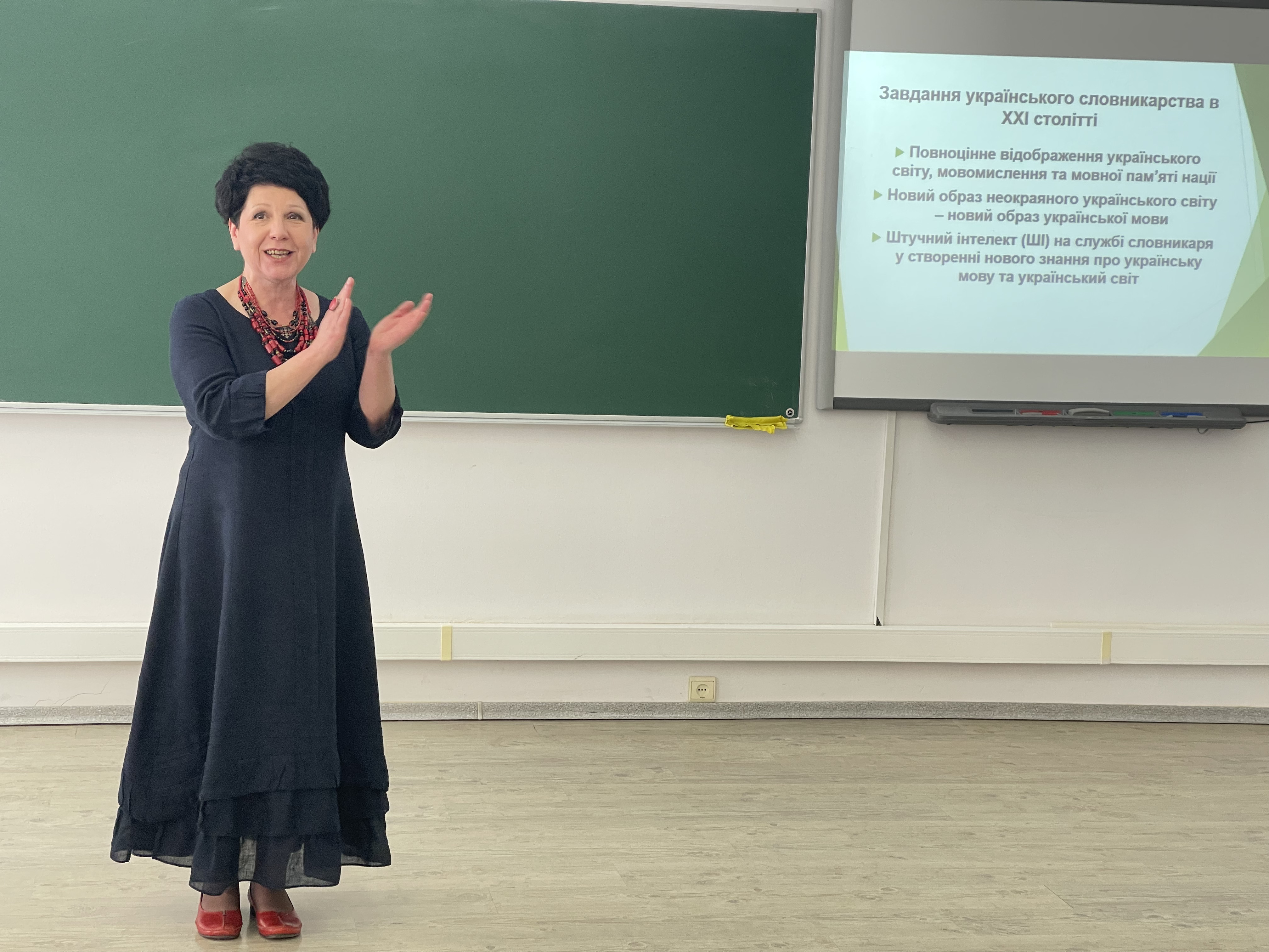 14 травня 2025 року відбулася знаменна подія – зустріч студентів і викладачів Факультету української філології, культури і мистецтва з відомими науковцями Інституту української мови НАН України – Євгенією Анатоліївною Карпіловською, завідувачем відділу лексикології, лексикографії та структурно-математичної лінгвістики, доктором філологічних наук, професором, та Оксаною Миколаївною Тищенко, старшим науковим співробітником відділу, кандидатом філологічних наук.