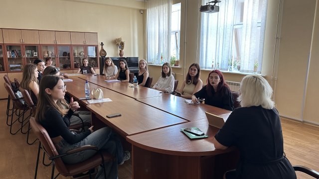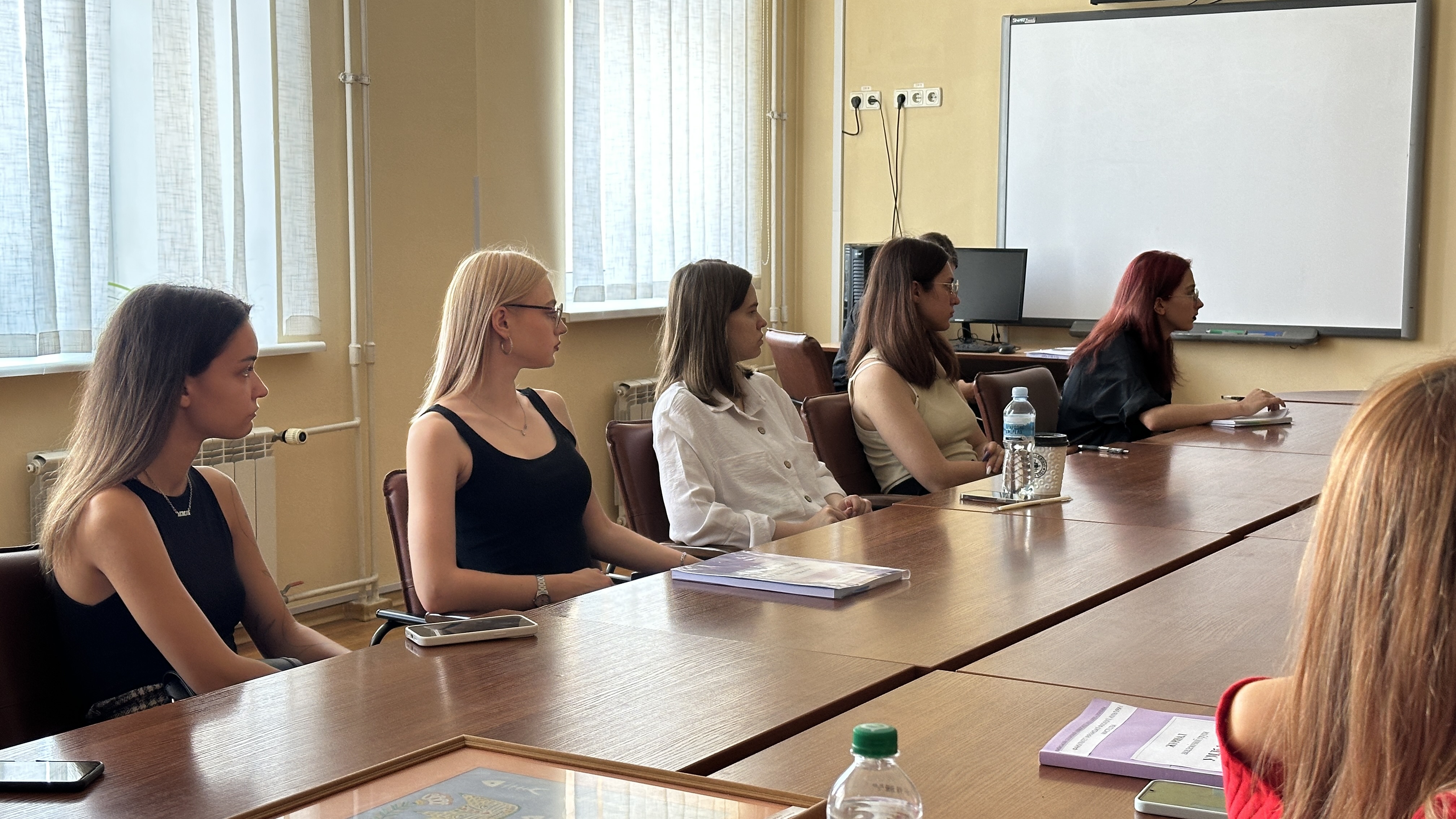 Зустріч проводили заступник декана з науково-педагогічної та соціально-гуманітарної роботи Тетяна Саврасова-В’юн та голова ради студентського самоврядування Факультету Вікторія Ляшенко.