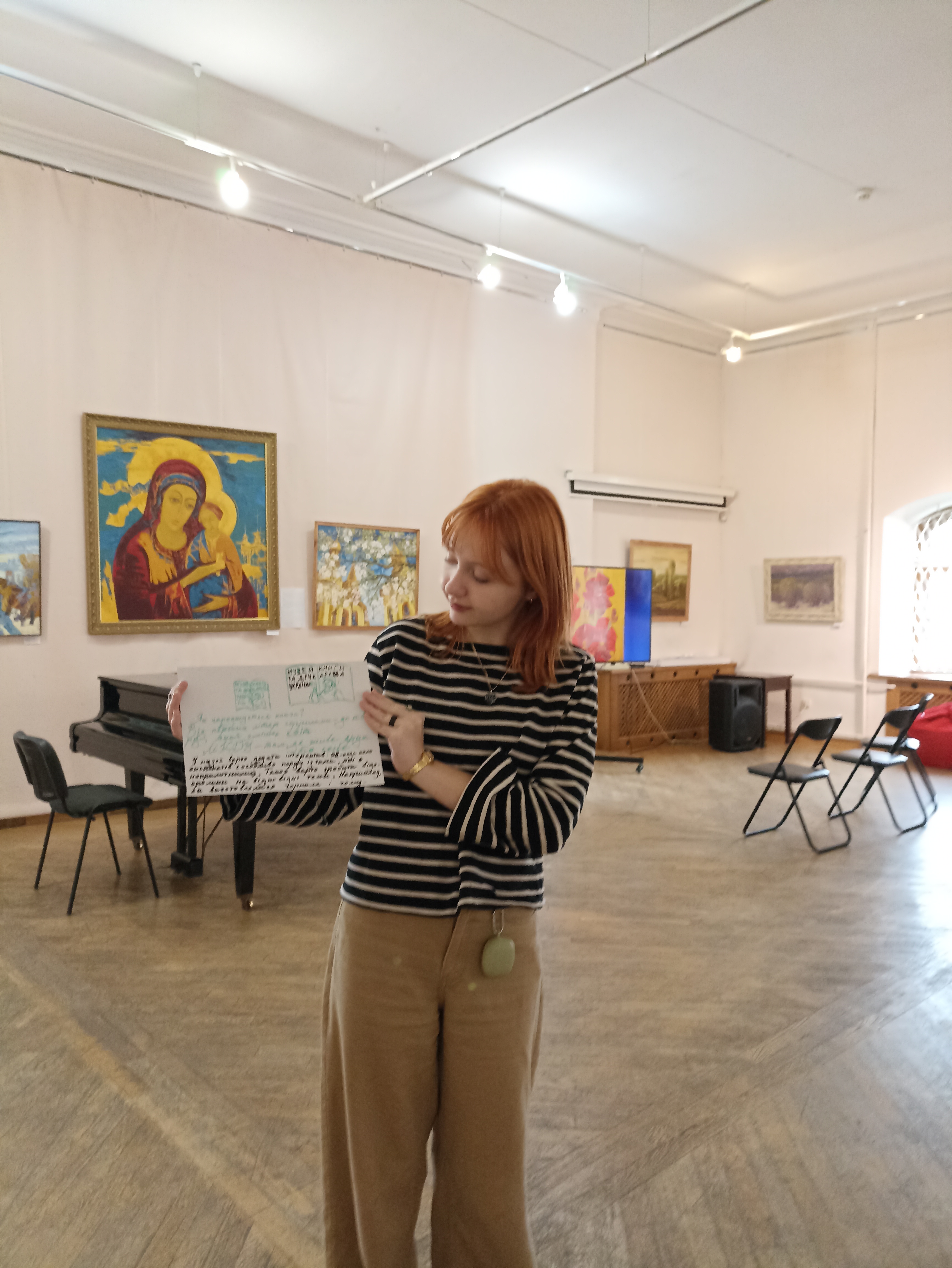 Заняття, розпочате в укритті (під час повітряної тривоги всі відвідувачі музею мають спуститися в облаштоване підземелля Успенського собору Києво-Печерської лаври) і продовжене в просторому музейному залі з чорним роялем, запам'яталося як незвичним форматом, так і ідеями, які генерували студентки.