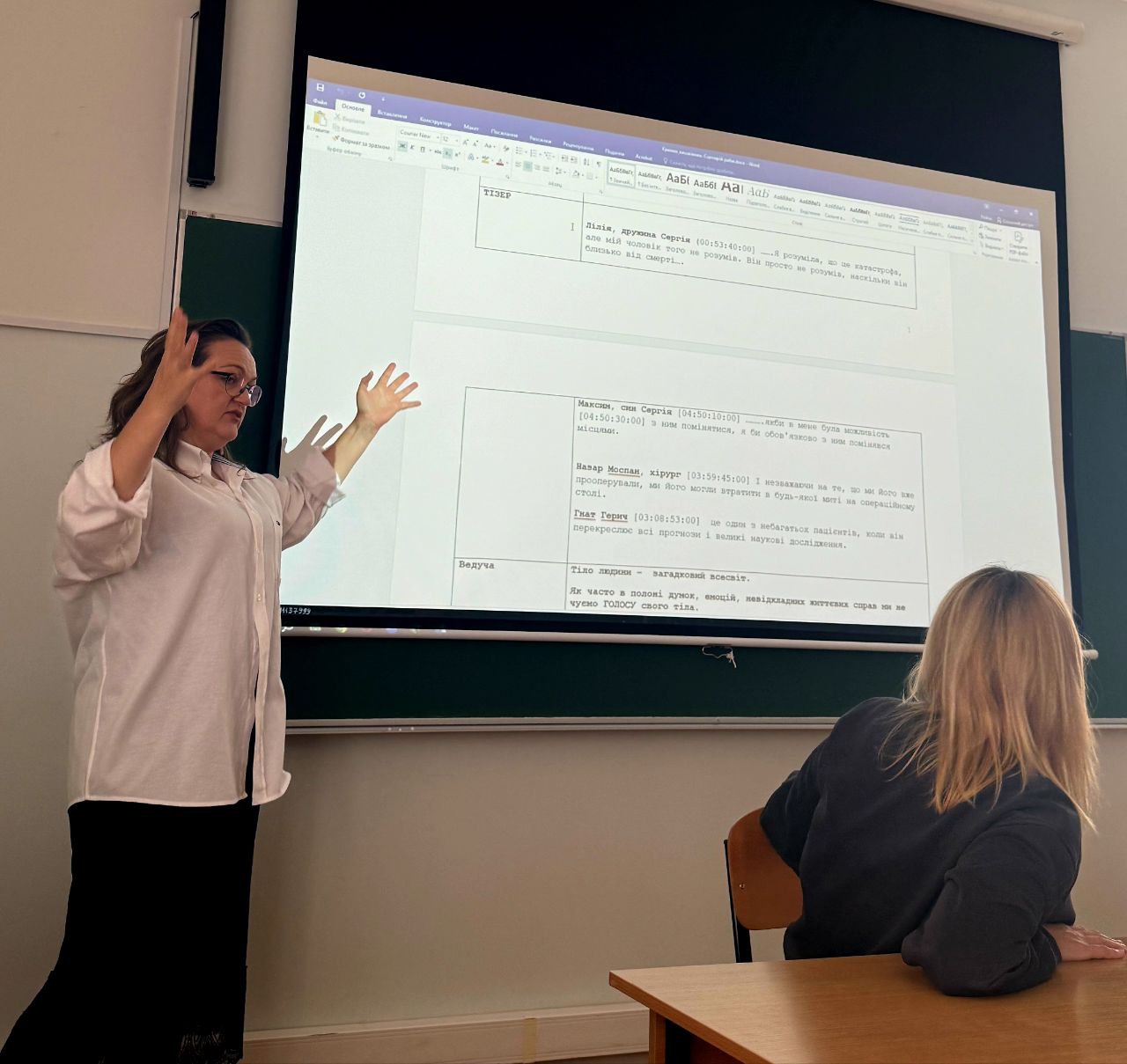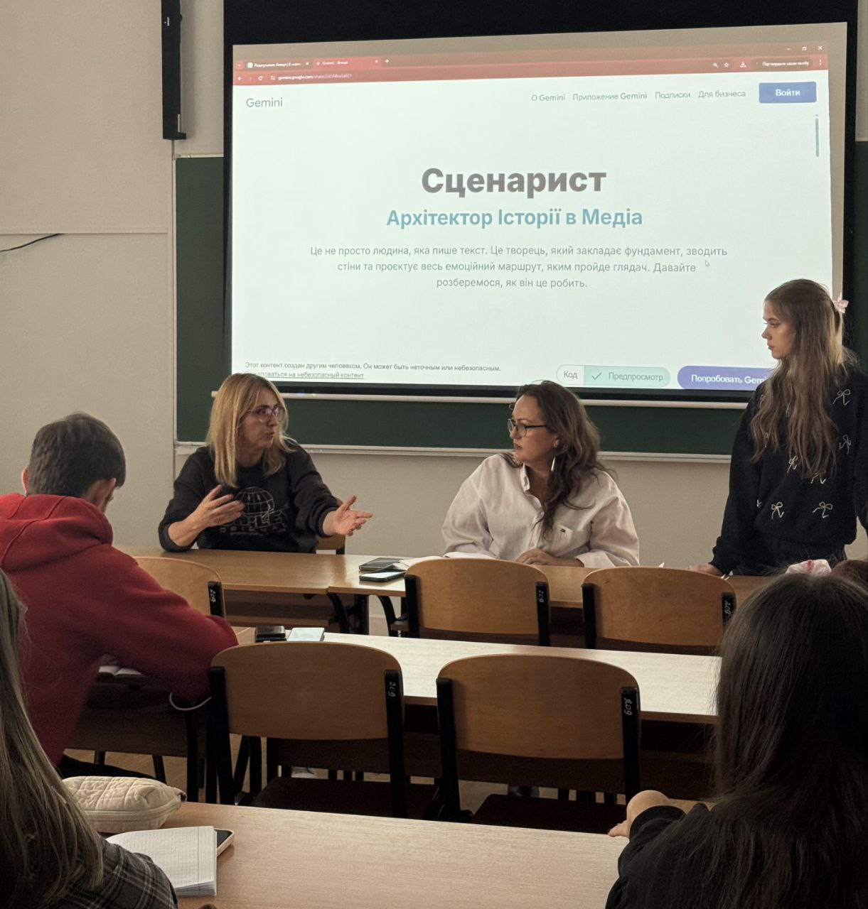 Зустріч пройшла в інтерактивній формі, яку організувала Олександра Буракова. Студенти не просто слухали, а й готували запитання, намагаючись спершу самостійно дати на них гіпотетичні відповіді. Такий підхід дозволив їм приміряти на себе роль сценариста ще до того, як вони почули від експерта, як насправді влаштована індустрія.