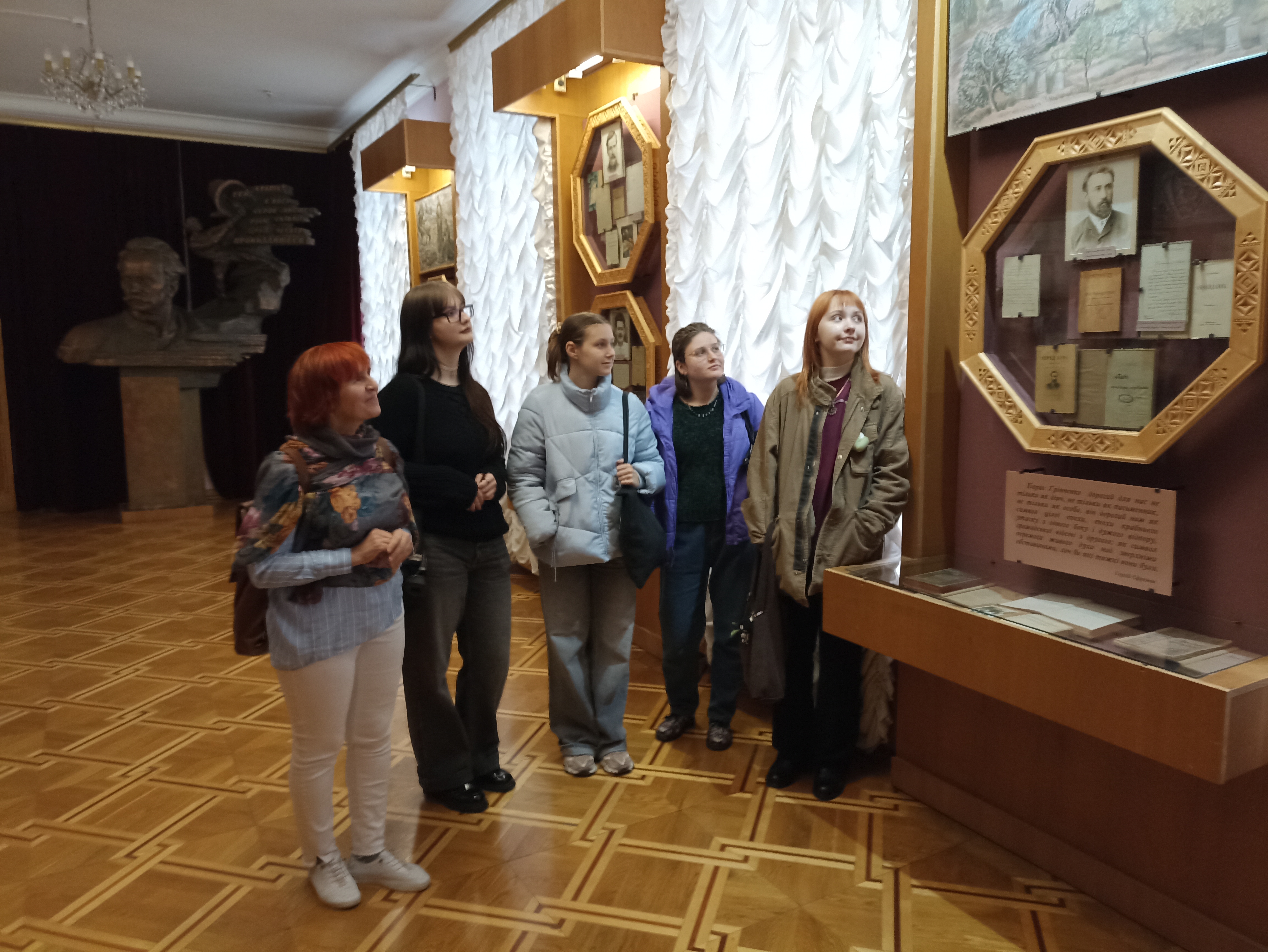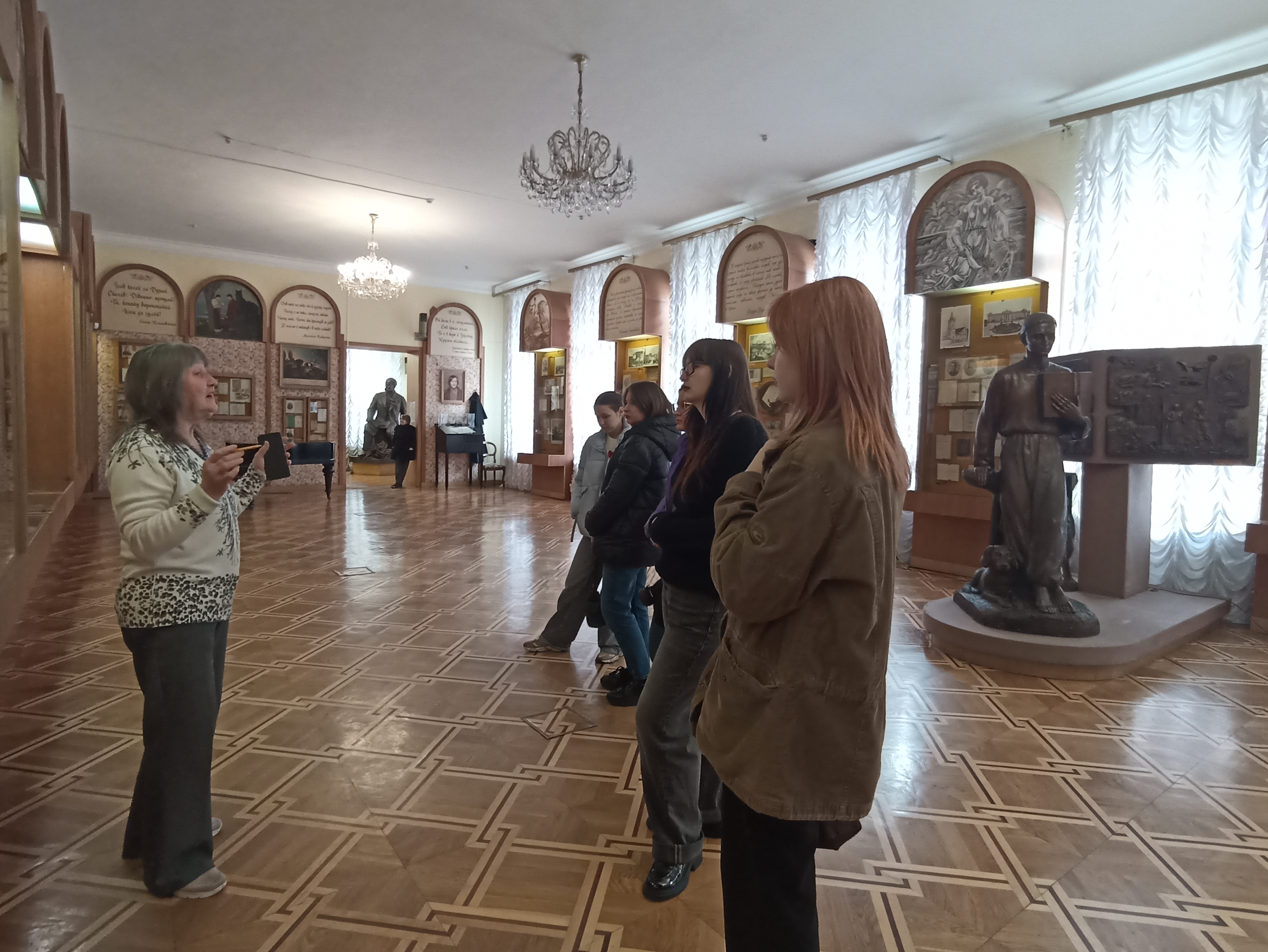 Сьогодні я відвідала Національний музей літератури України. У нас була екскурсовод Наталія Петренко, яка розповідала про експонати та письменників аж 1,5 години. Я б не сказала, що це була найкраща екскурсія в моєму житті. Було багато нового, чого я не знала, але через подачу вся інформація не відкладалася в голові. Єдине, що я запам’ятала — це те, що сходами музею ходив Симон Петлюра, також тут був Вінграновський, а ще одна співробітниця музею була одногрупницею Чорновола. Багато було «води» та непотрібної інформації, яка знуджує. І не важливо, як емоційно і захопливо розповідала екскурсовод — якщо інформація не цікава, то навіть усмішка на обличчі оповідача не зробить її цікавою. Розповідь була насичена вторинною інформацією, яка не орієнтована на молодь. Це зовсім не створює зацікавленість, а навпаки відштовхує.