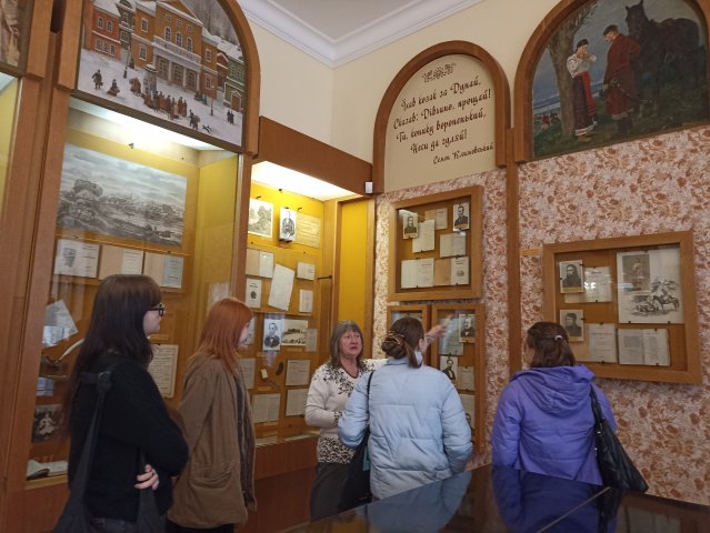 Ще однією частиною занять була авторська екскурсія, натхненно й фахово проведена співробітниками музею: екскурсовод Наталія Петренко ознайомила з історією експонатів, розкривши цікаві деталі щодо постатей і артефактів музею, а заступниця директора з наукової роботи Музею Наталія Бондар поділилася особливостями функціонування архіву, який налічує понад 100 тисяч експонатів, пошуком розв’язання проблем, які постали перед музейниками в час війни з російським агресором.