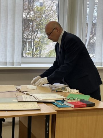 Під час лекції присутні мали унікальну можливість не лише почути теоретичні настанови, а й візуально познайомитися з безцінними матеріалами. О. Бабенко продемонстрував оригінальні документи, що зберігаються у ЦДАВО України, зокрема матеріали з т. зв. Празького архіву. Особливий акцент було зроблено на документах, що стосуються життя і творчості поета-вісниківця Юрія Дарагана. Це дало змогу учасникам заходу безпосередньо побачити, як архівні свідчення допомагають відтворити біографічні лакуни та поглибити розуміння творчого шляху письменника.