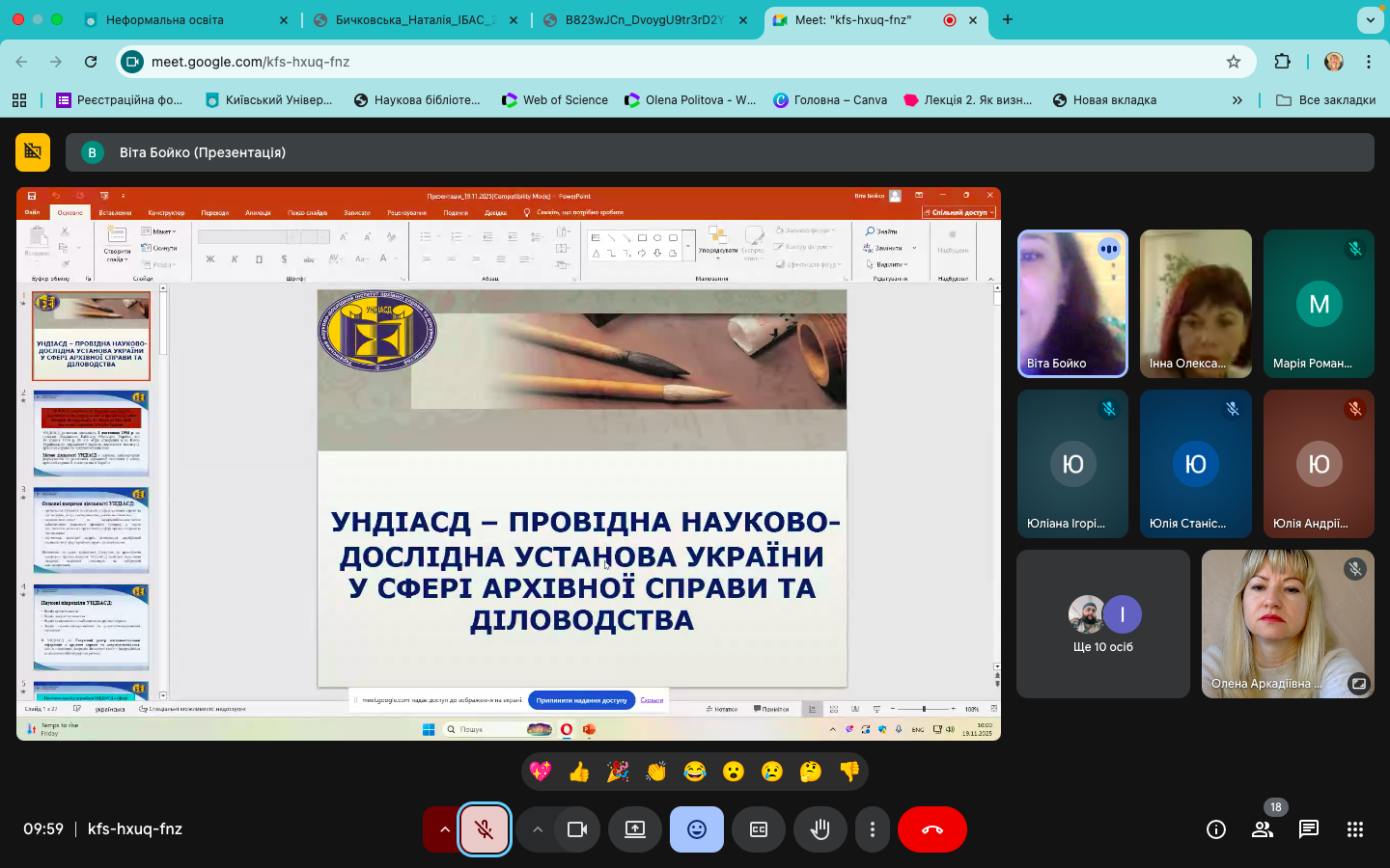 19 листопада 2025 р. на запрошення кафедри інформаційних комунікацій для студентів ОП «Інформаційна, бібліотечна та архівна справа» відбулася гостьова лекція кандидата історичних наук, старшого дослідника, заступника директора з наукової роботи Українського науково-дослідного інституту архівної справи та документознавства Віти Федорівни Бойко на тему «УНДІАСД – провідна науково-дослідна установа України у сфері архівної справи та діловодства».