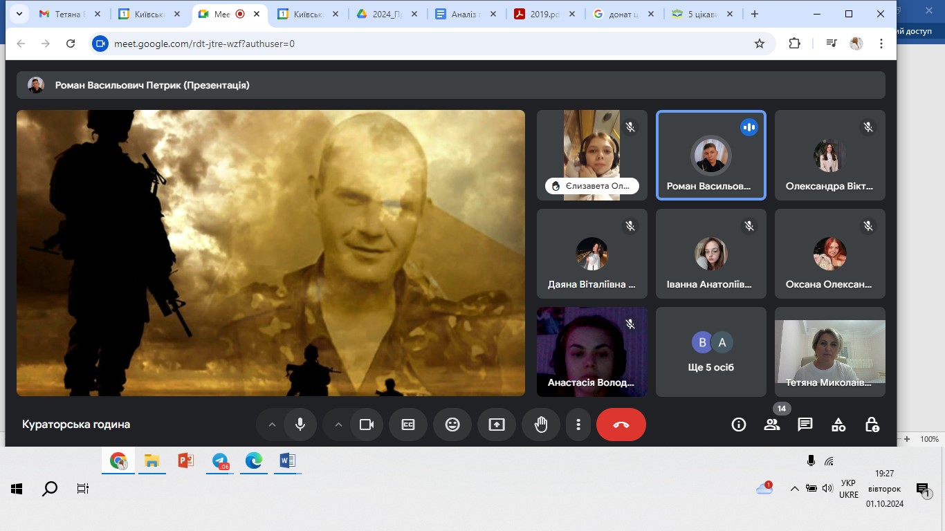 01 жовтня 2024 року в День козацтва, День Захисників і Захисниць України студенти групи УМЛ-1-22-4.0д (куратор Тетяна Вінтонів) Факультету української філології, культури і мистецтва Київського столичного університету імені Бориса Грінченка здійснили реалізацію проєкту «Історії наших Захисників».