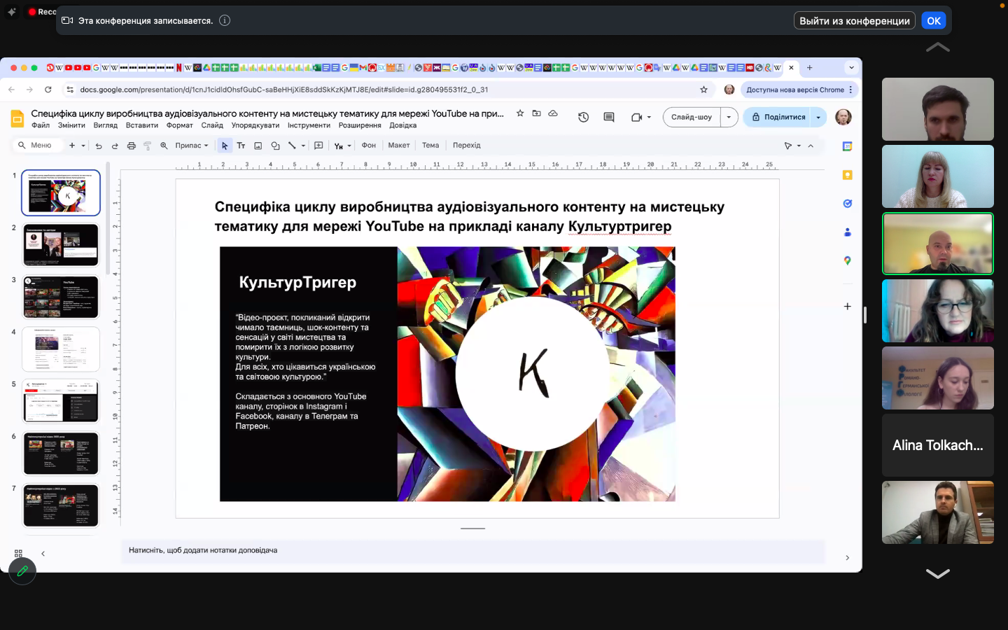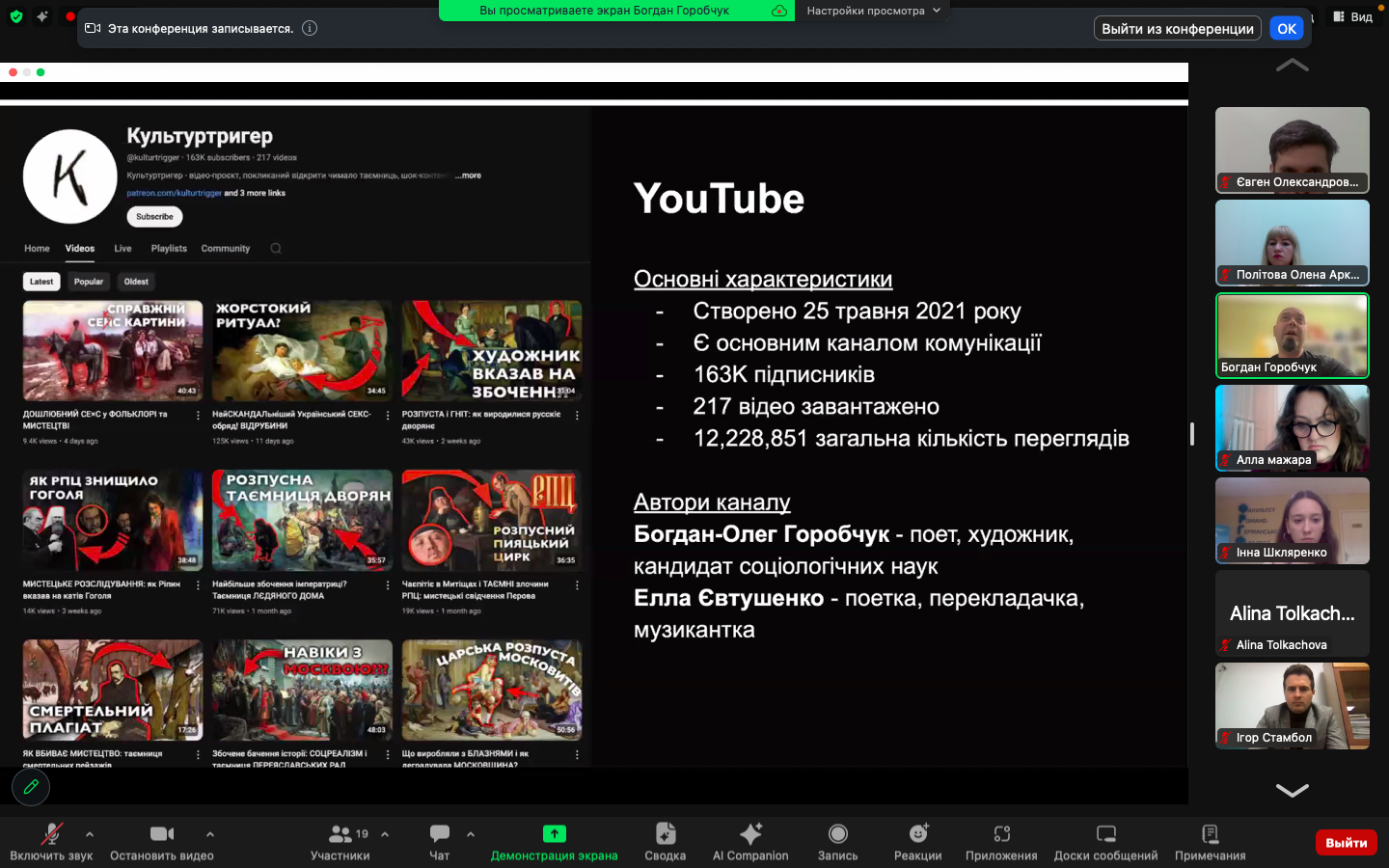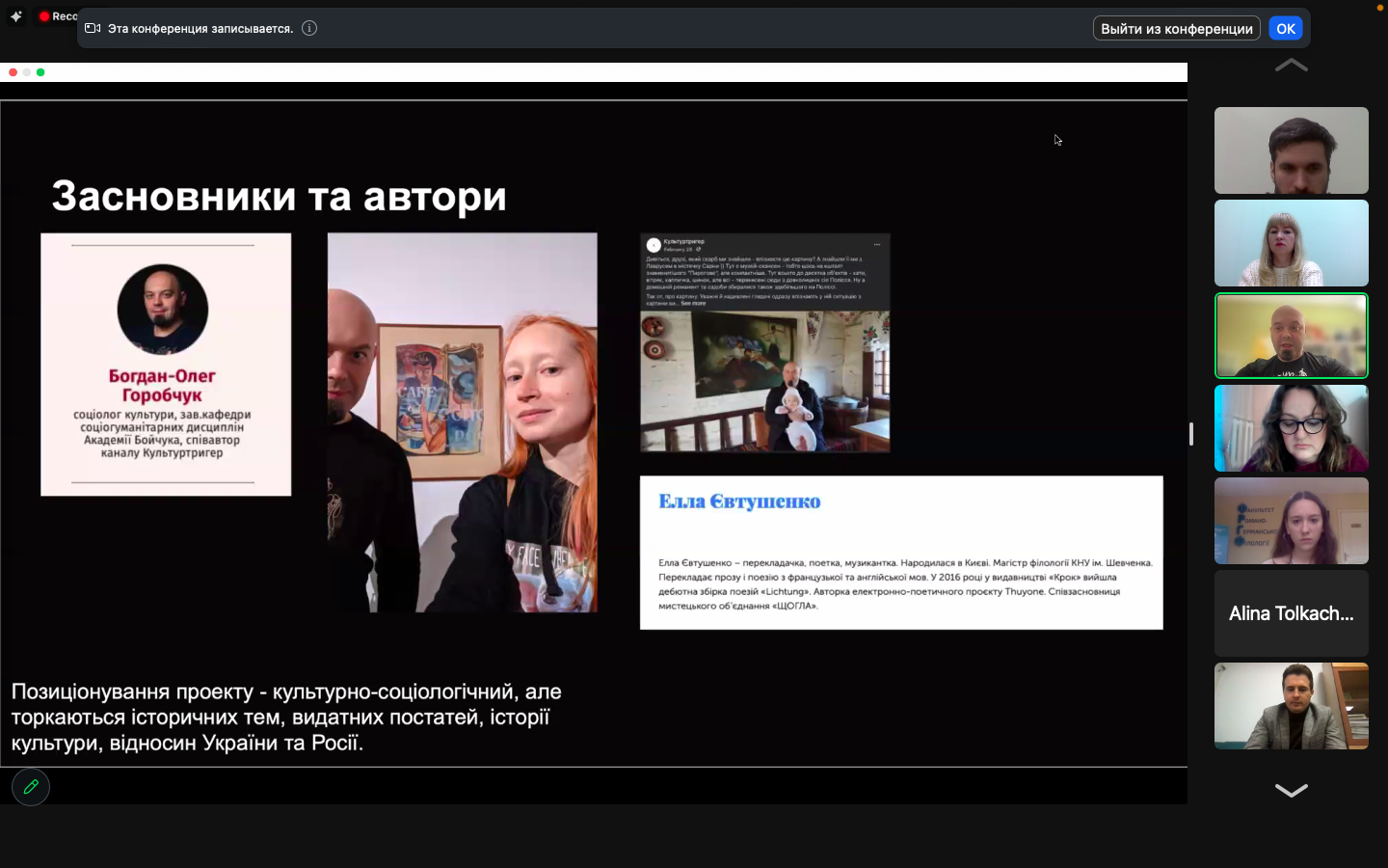 Завершував захід аудіовізуальний проєкт першокурсників Драганчук Міранди, Білявцева Данила, Кулик Анжеліни, тема якого – «Боротьба митців за українську мову та культуру».