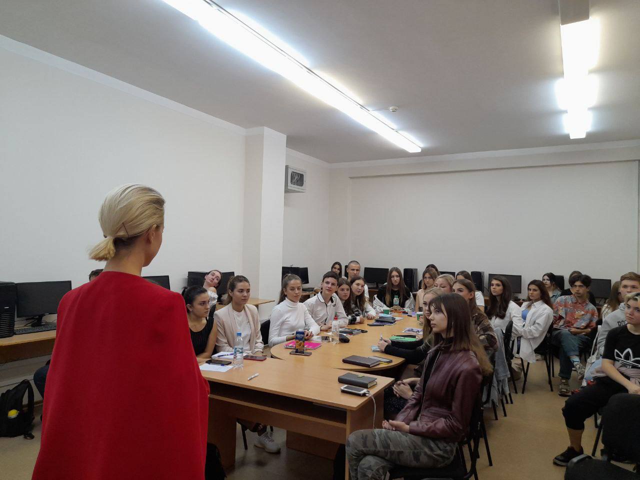 Під час спілкування Олена розповіла про особливості спеціальності телеведучого, поділилась досвідом роботи на телебаченні. За словами гостьової лекторки, основний секрет успіху в обраній професії - це працелюбність, азарт, гарне знання мови і, звичайно, харизма в кадрі.