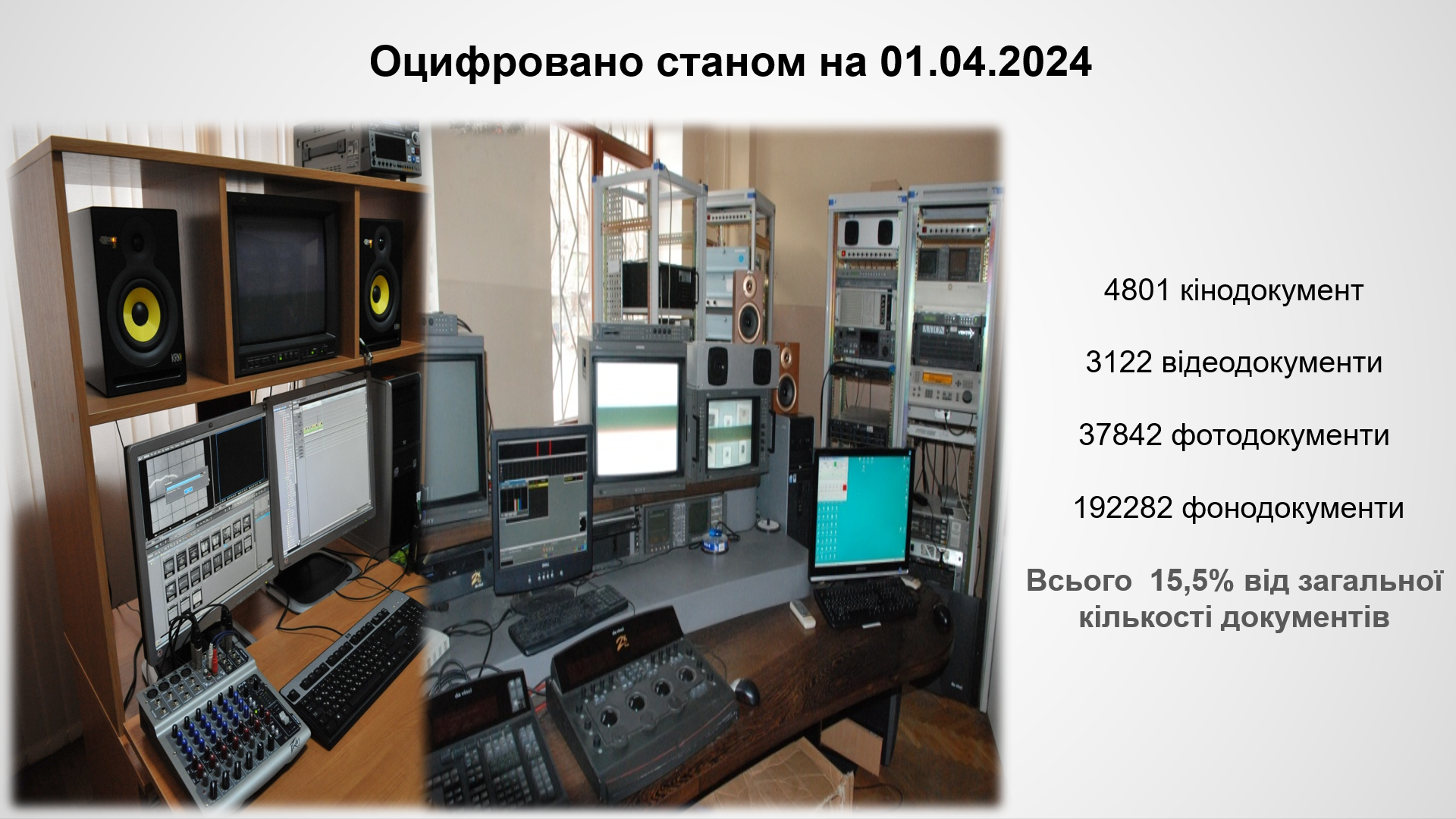 Магістри отримали повну та надзвичайно цікаву інформацію щодо формування фондів ЦДАВЕА, основних пріоритетів оцифровування аудіовізуальних документів, участі архіву у державній галузевій Програмі оцифрування архівних інформаційних ресурсів на 2022-2025 роки, затвердженої наказом Державної архівної служби України від 29.12.2021. У 2023 році архівом створено цифровий фонд користування на 414 од. обл. кінодокументів, 6700 од. обл, фонодокументів, 13324 од. обл. фотодокументів та 71 од. обл. відеодокументів. Загалом ЦДАВЕА станом на 01.01.2024 року оцифровано 183526 од. обл., що становить 35% від загальної кількості документів НАФ (524341 од. обл.). Таким чином «прихована спадщина», як часто називають архівні аудіовізуальні документи, стає доступною для активного використання у дослідженнях!