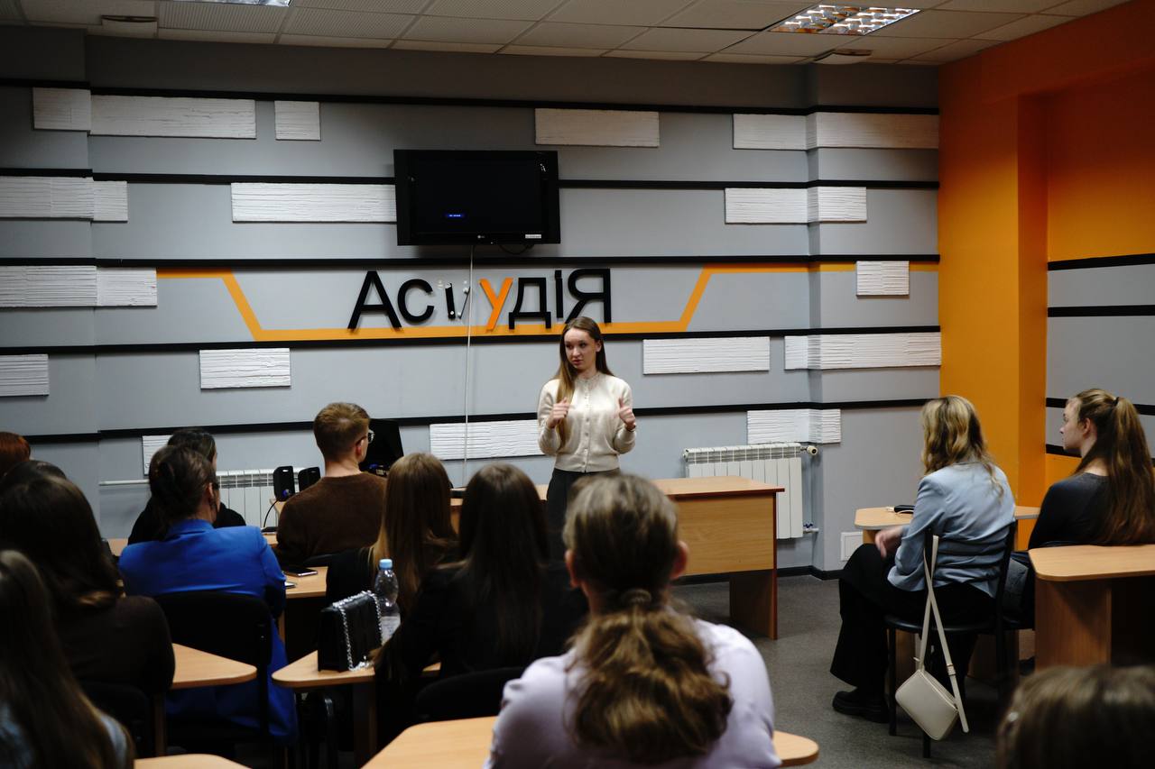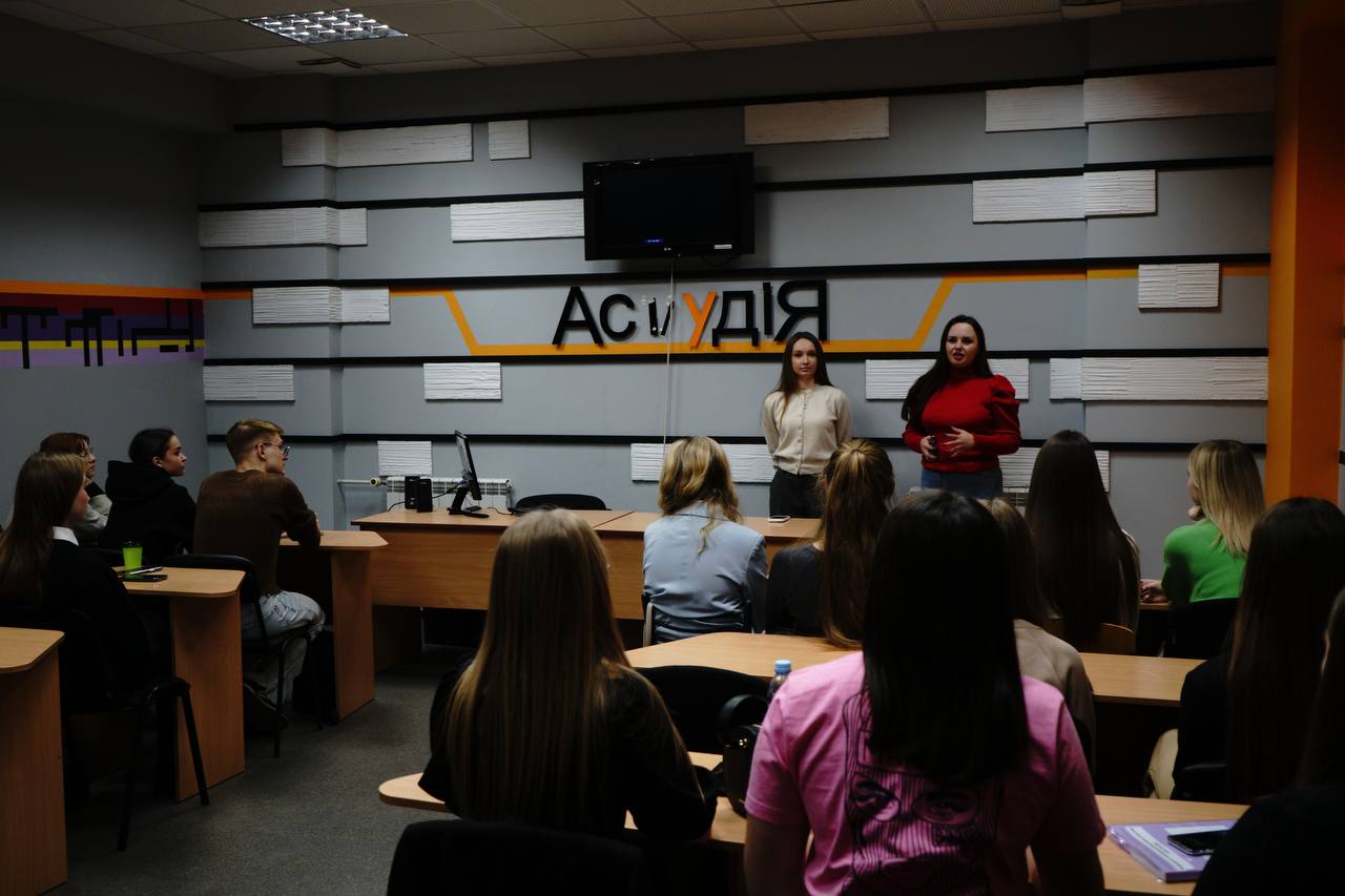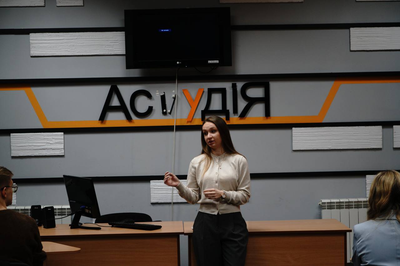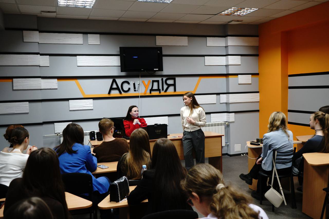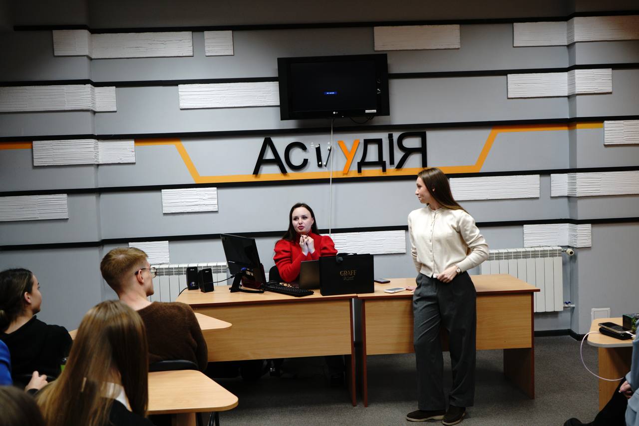 12 листопада 2024 року в рамках дисципліни «Сучасні інформаційні програми на телебаченні» викладач кафедри інформаційних комунікацій Черкасець М.С. разом із журналісткою-телеведучою програм на телеканалі “Інтер” та PR-директоркою корпорації «Біосфера» Анастасією Кошубою провела практичні заняття зі студентами 2 курсу ОПП «Ведучий телевізійних програм» в Астудія. Анастасія поділилась під час зустрічі своїм медійним досвідом: пояснила, у чому різниця новинного та проєктного формату на телебаченні, розповіла про часті факапи телевізійників на зйомках, а також розкрила тему суміжних напрямів у сферах PR і телебачення.