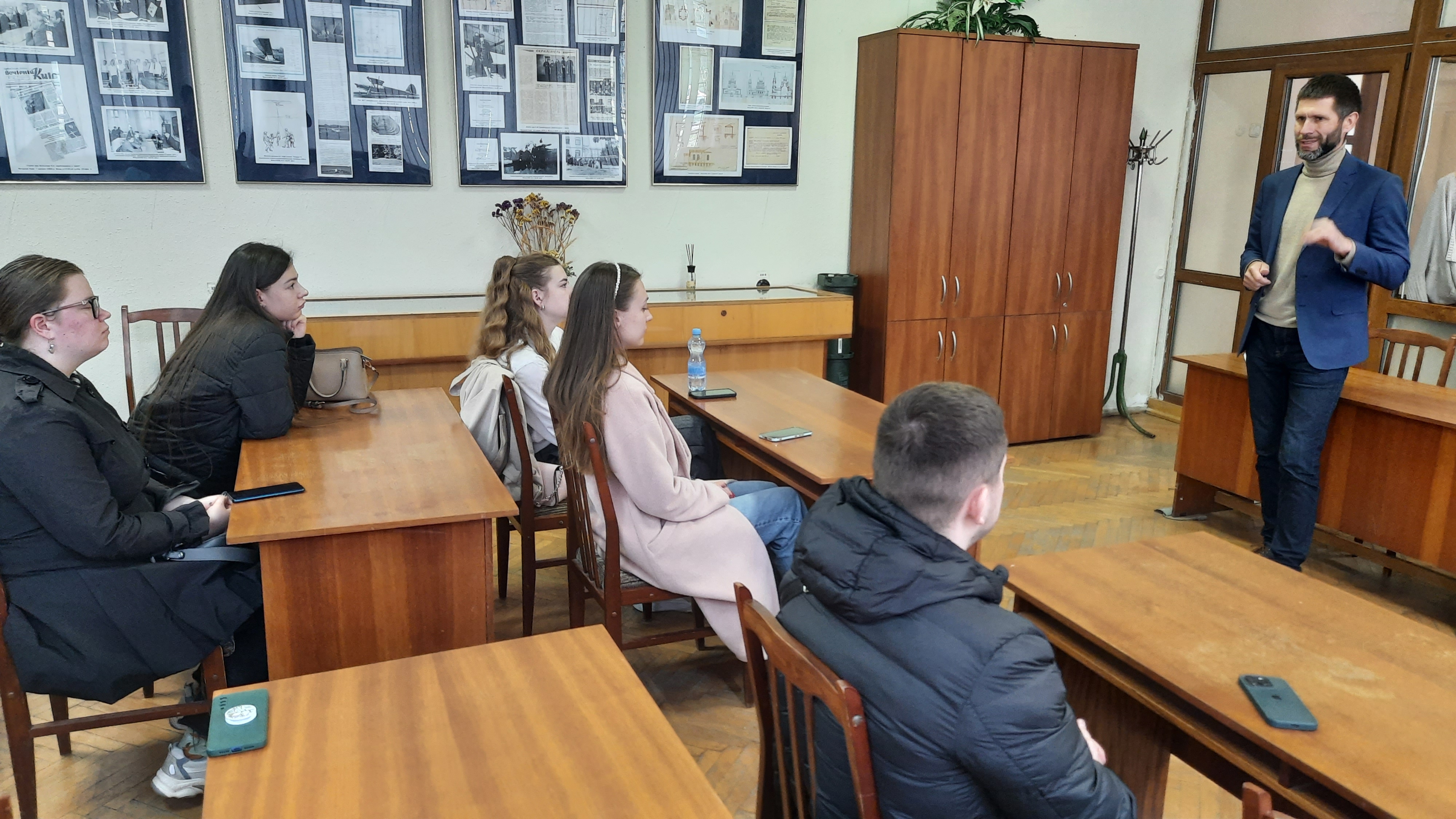 Вступну лекцію та інструктаж майбутнім магістрам провів директор архіву, кандидат історичних наук Іван Миколайович Кісіль, який наголосив на важливості збереження документів в усі часи та, особливо, в умовах воєнного стану. Також директор архіву розповів про історію створення та формування фондів установи. Магістрантам було продемонстровано добірку документів Київського магістрату 17-18 століття, архітектурні креслення, розпорядження міської управи ХІХ-ХХ ст., світлини з київських університетів та інші документи. У сховищі архіву було показано систему утримання паперових фондів та відзначено найважливіші умови, яких потребують фонди для безпечного зберігання.