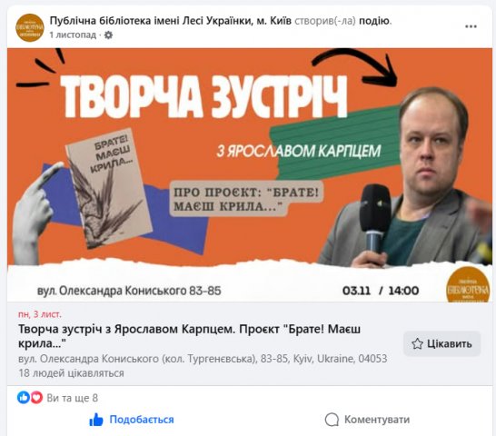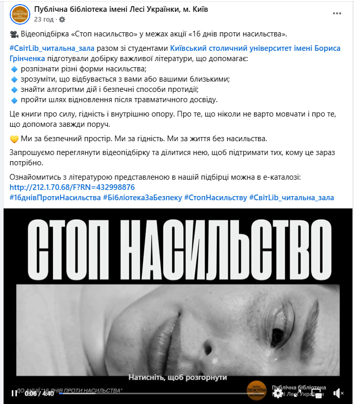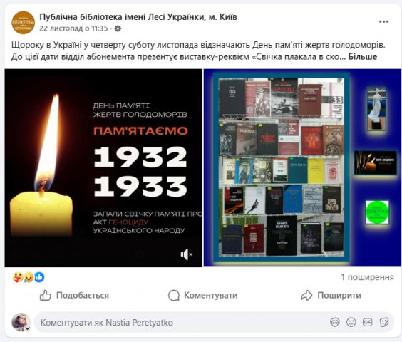 Сподіваємося незабаром побачити огляди, рекомендаційні списки та відеоресурси, створені на базі переданої інформації на сторінці Публічної бібліотеки імені Лесі Українки «Що почитати?» https://lukl.kyiv.ua/shcho-pochytaty/ та у соціальних мережах бібліотеки.