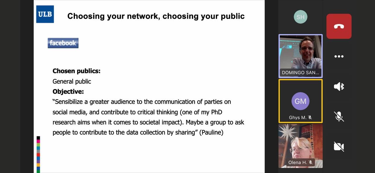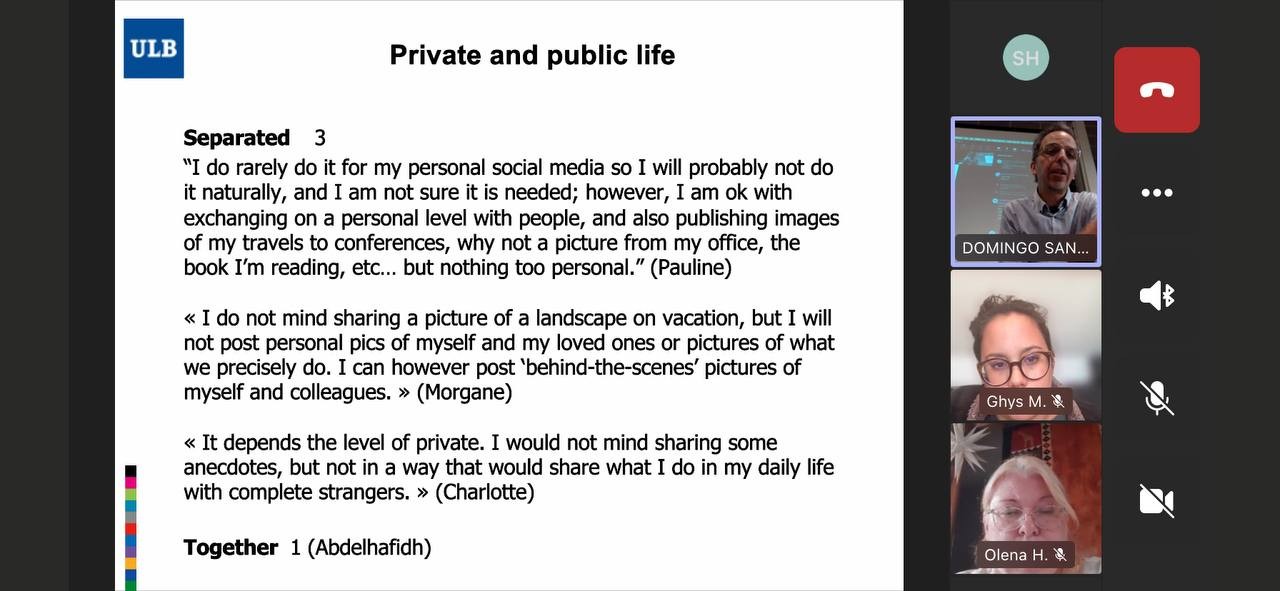 Ворк-шоп пройшов у формі дискусії, яку модерував професор кафедри інформаційних та комунікаційних наук Брюссельського вільного університету Девід Домінго (David Domingo Santamaría). Учасники ворк-шопу, серед яких були магістри: Гуменюк Софія, Дашинська Діана, Зуєва Мирослава, Пшенишнюк Оксана, Шевченко Анастасія та Шевчук Діана, ділились своїми думками щодо висвітлення особистого та публічного життя у соціальних мережах, обговорювали, які соціальні медіа є найефективнішими для роботи науковця, а також те, як правильно розвивати та підтримувати ініціативу в соціальних мережах у дослідницьких групах.