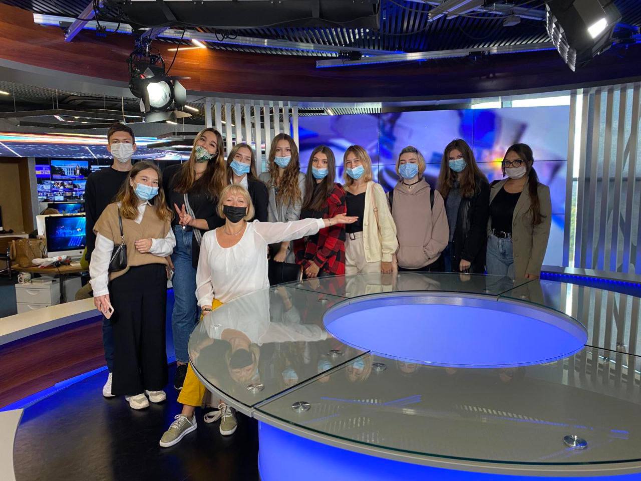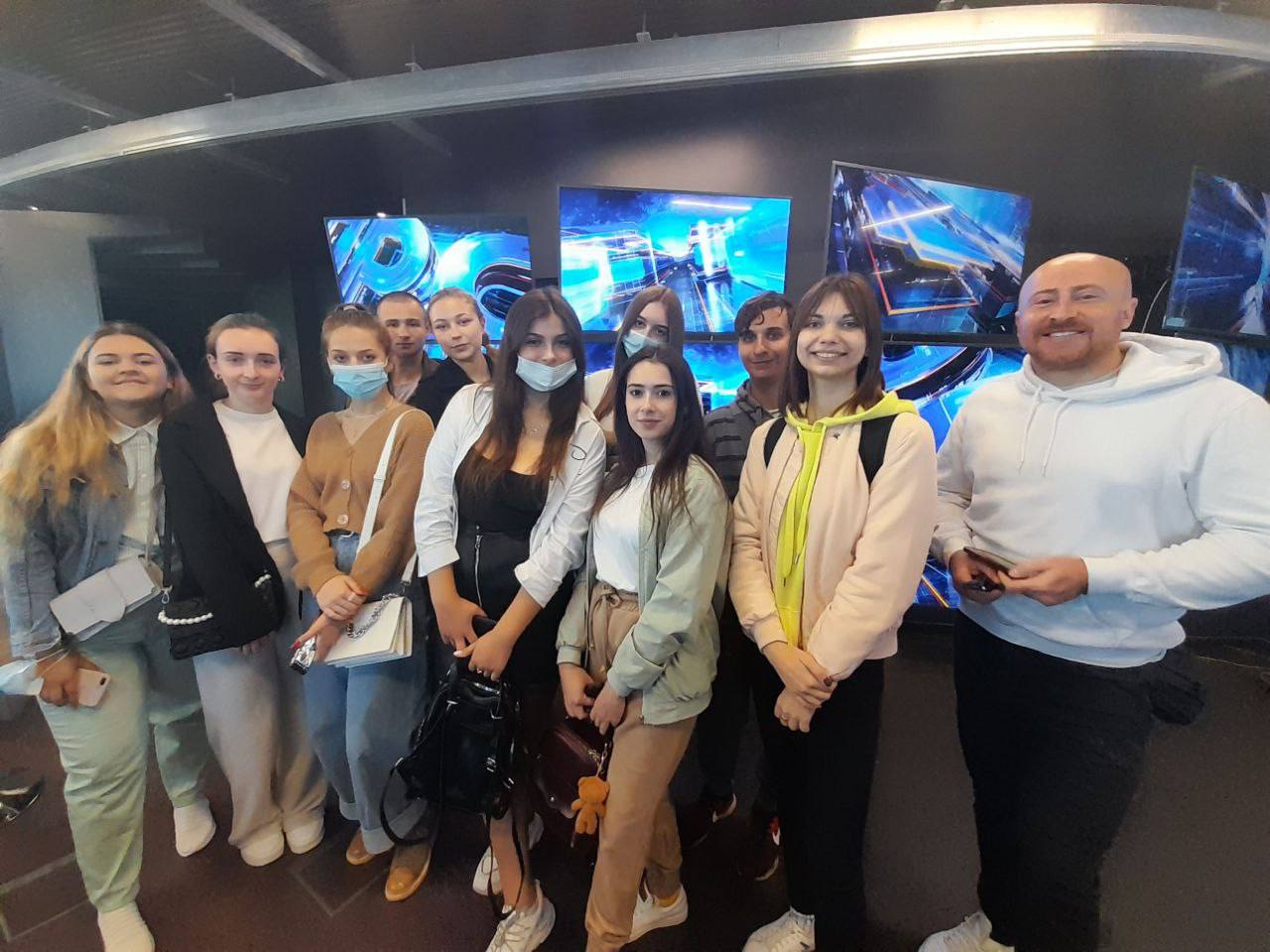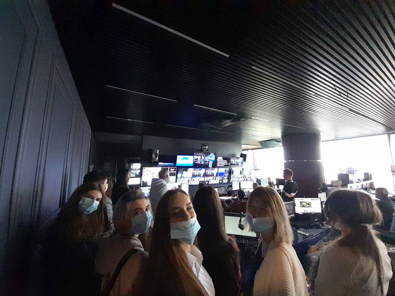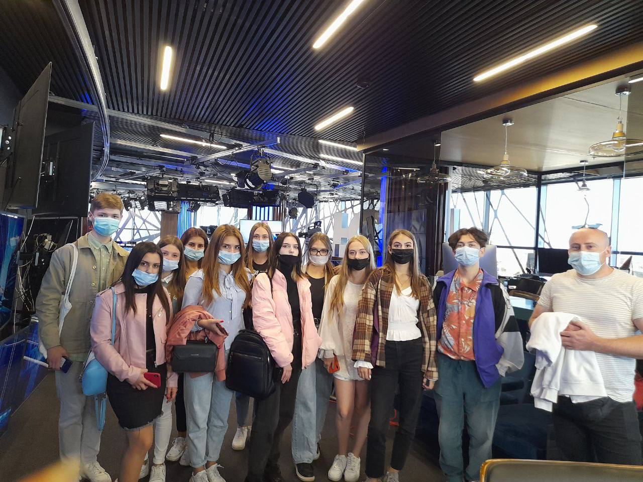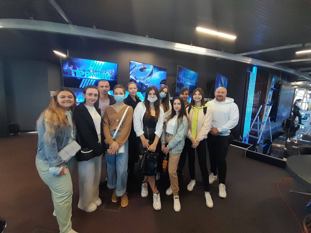 3 вересня 2021 року здобувачі освіти 1 курсу групи ВТПб-1-21-4.0д освітньо-професійної програми «Ведучий телевізійних програм» спеціальності «Аудіовізуальне мистецтво та виробництво» Інституту журналістики відвідали телевізійний інформаційний канал «Прямий». Організатором заходу були доценти кафедри бібліотекознавства та інформології Лісневська Аліна Леонідівна та Захаров Віталій Володимирович. Під час екскурсії студенти ознайомилися з роботою знімальних студій, режисерських апаратних, монтажних кімнат та інших ключових відділів, які забезпечують створення телевізійного контенту. Майбутні фахівці отримали унікальну можливість поспілкуватися з професіоналами галузі, спостерігати за робочим процесом у прямому ефірі та дізнатися більше про сучасні технології, що використовуються у телебаченні.