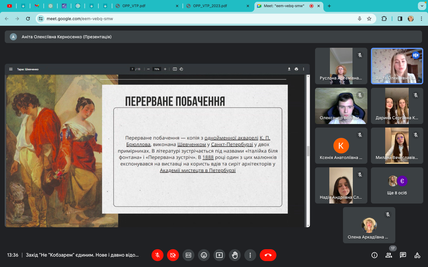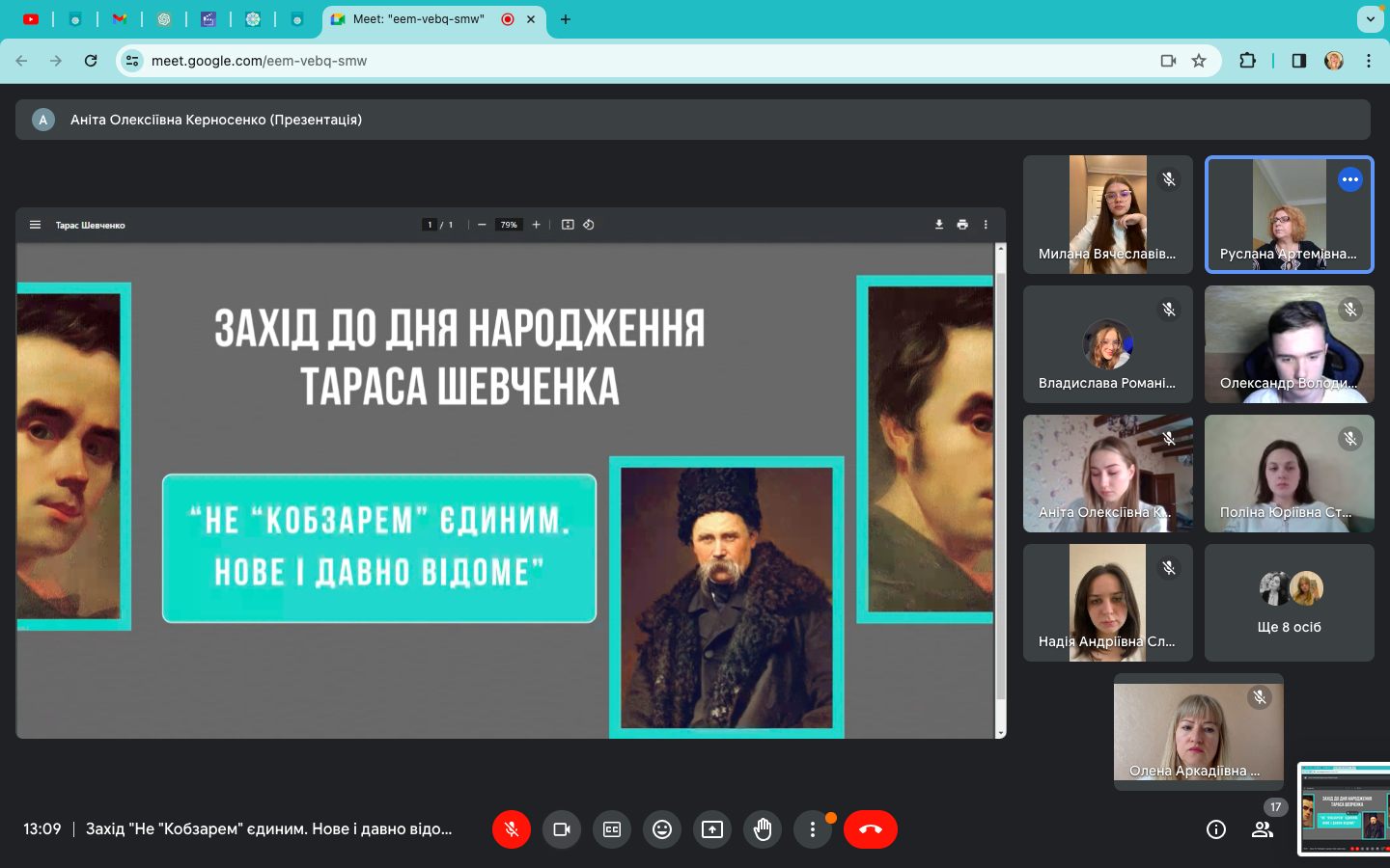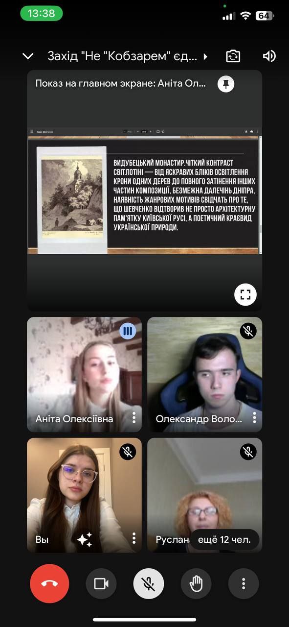 Студенти представили творчі роботи у вигляді презентацій, відеоробіт, інтерв'ю, в яких щиро намагалися розвінчати міфи про життя і творчість Тараса Шевченка. Цікаві й маловідомі факти, які молодь розкрила у своїх роботах розширили уявлення про видатного українця як простої і водночас геніальної та унікальної особистості. Під час зустрічі майбутні телеведучі яскраво продемонстрували свої професійні навички: роботу з камерою, чітку дикцію та вимову, акторську майстерність, а також вміння працювати в команді та емоційний інтелект. Щиро вдячні нашим талановитим студентам за їх творчість!