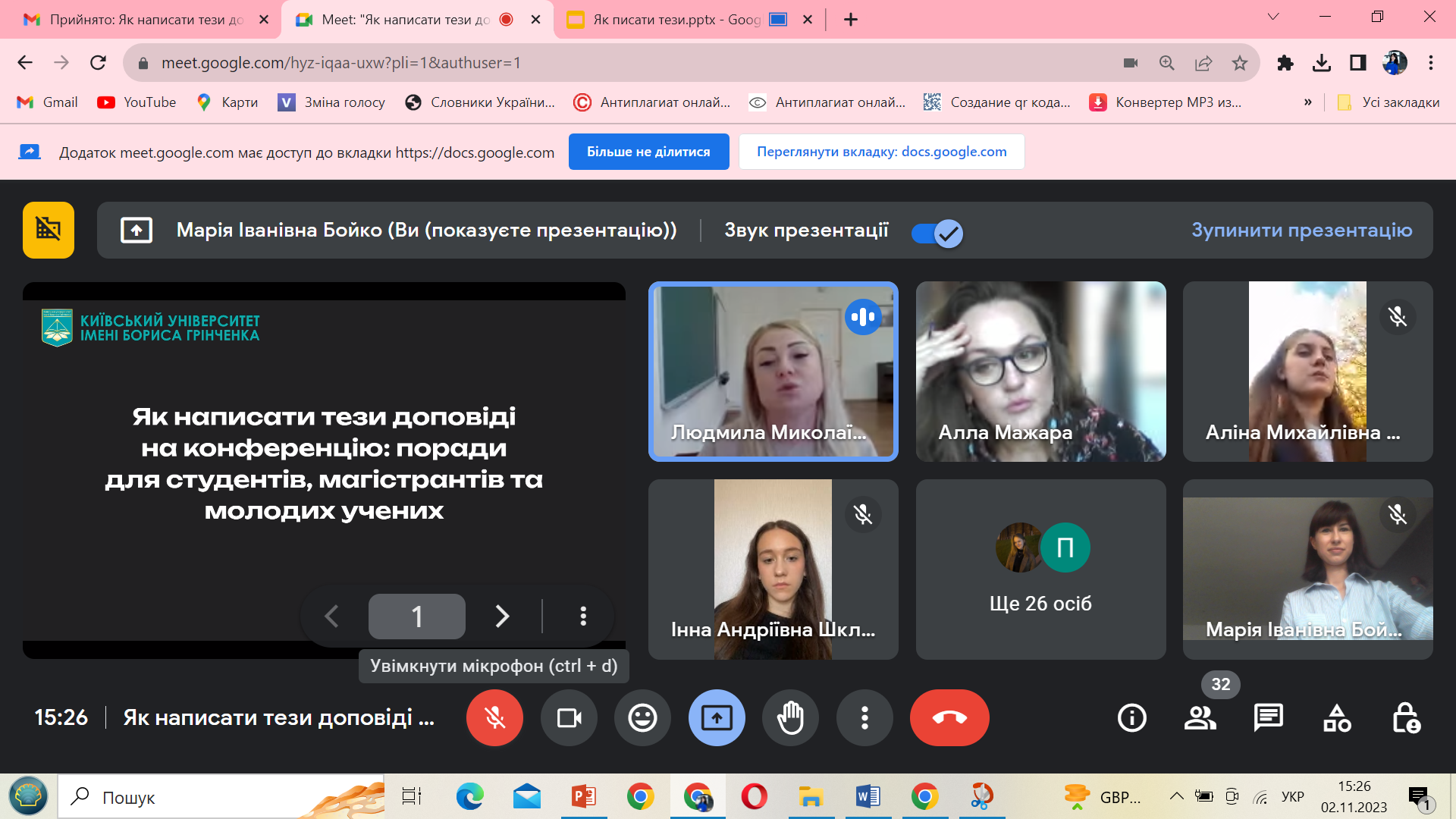 Правильну траєкторію руху на шляху до хороших професійних тез, а згодом і публікації у фаховому виданні, презентувала Марія Іванівна Бойко, кандидат педагогічних наук, старший викладач кафедри української мови, заступник голови наукового товариства Факультету.