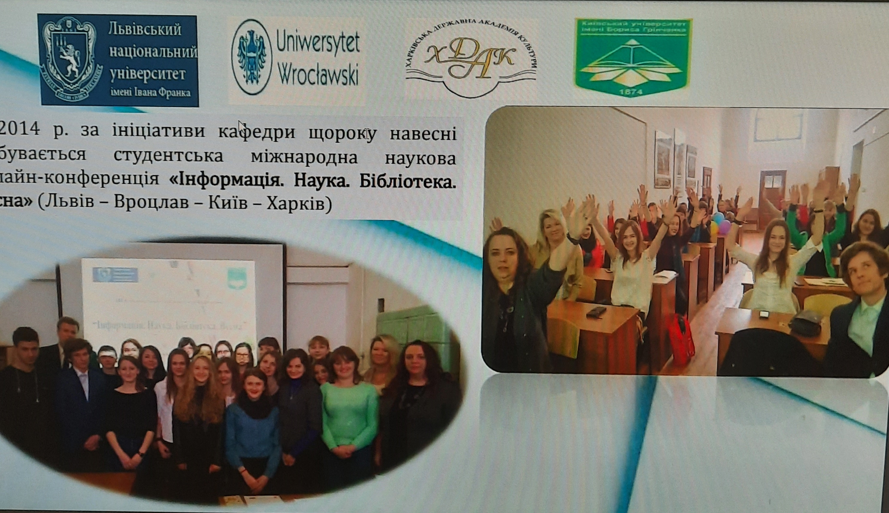 Факультет української філології, культури і мистецтва Університету Грінченка щиросердно привітав Факультет культури і мистецтва Університету Франка із ювілеєм. Кафедра інформаційних комунікацій плідно співпрацює з кафедрою бібліотекознавства та бібліографії ЛНУ на ниві підготовки майбутніх фахівців інформаційно-бібліотечної сфери, кафедри є співорганізаторами студентської міжнародної конференції «Інформація. Наука. Бібліотека. Весна», активними учасниками освітньої секції Львівського бібліотечного форуму.
