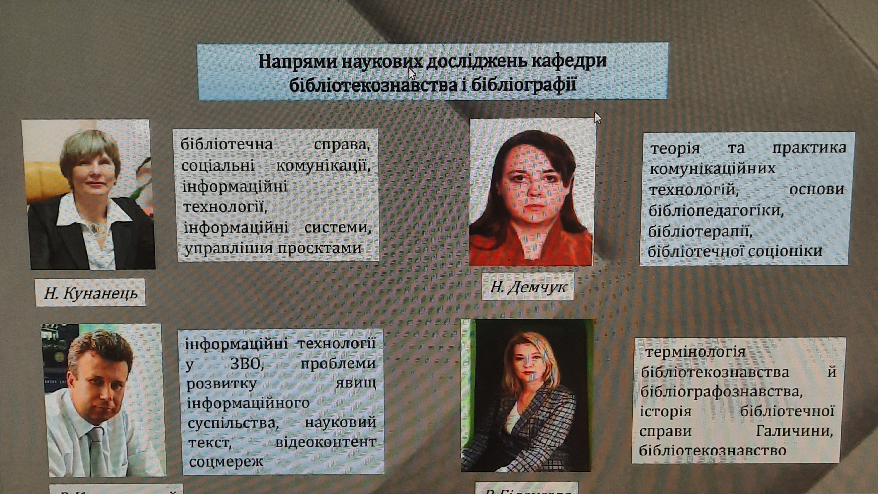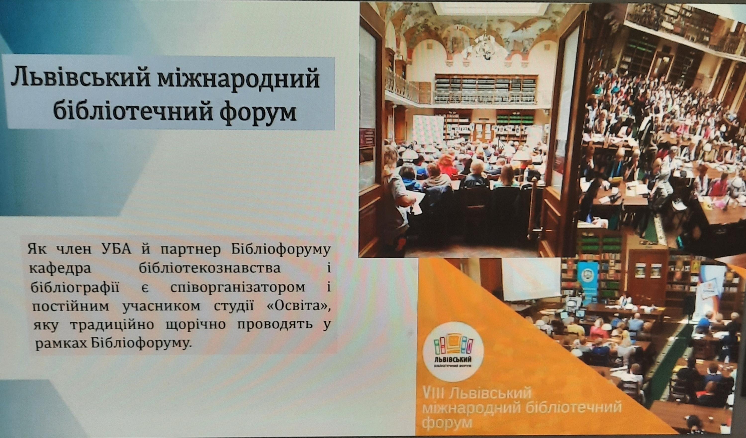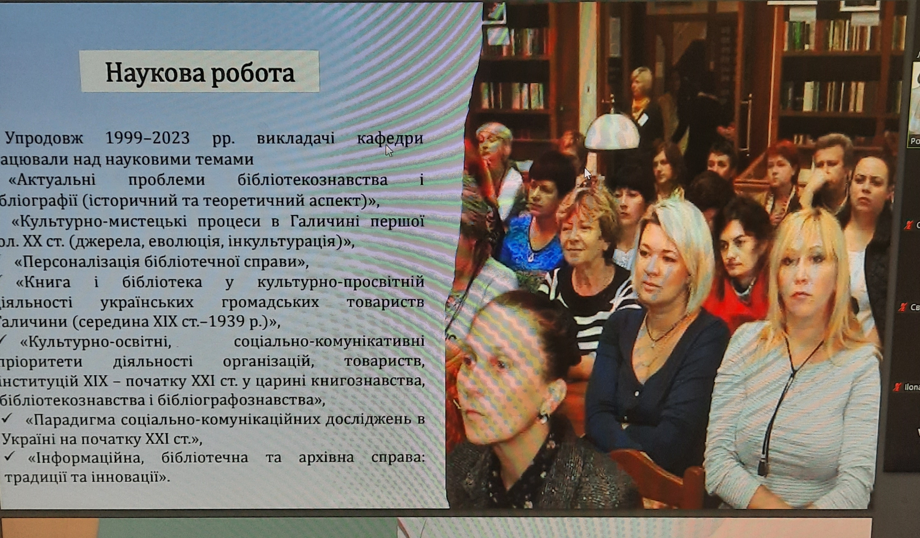 Представники кафедри інформаційних комунікацій взяли участь у роботі секції конференції «Інформаційна, бібліотечна та архівна справа: традиції та інновації». Професор кафедри інформаційних комунікацій, доктор наук із соціальних комунікацій, О.В. Григоревська виступила із доповіддю «Міждисциплінарна підготовка інформаційних фахівців: європейський досвід», доцент кафедри, кандидат історичних наук, І.І. Стамбол – «Біографічні проєкти в системі науково-педагогічної та культурної комунікації».