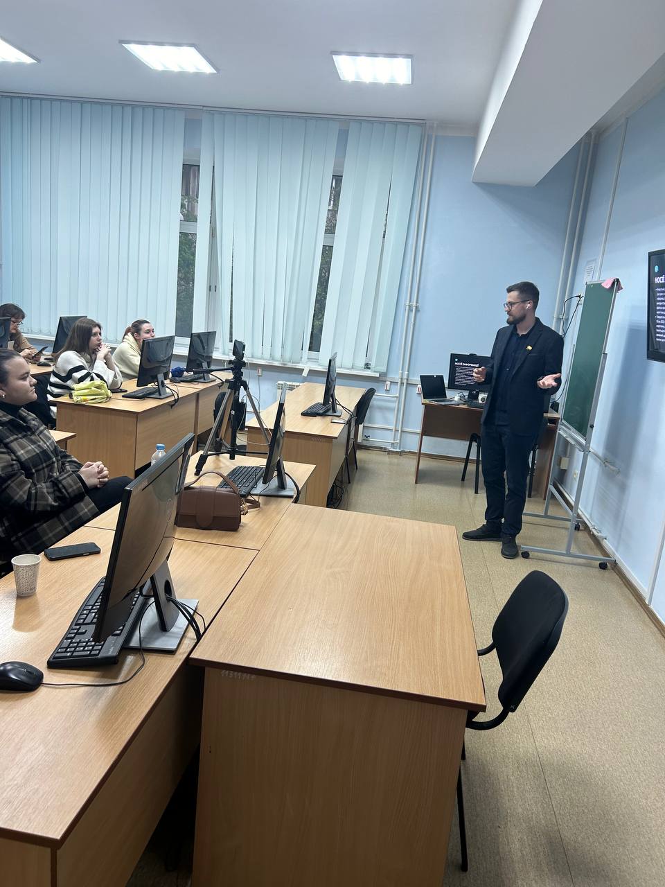 18 квітня 2024 року старший викладач кафедри інформаційних комунікацій Вітковський Д.І. провів відкрите лекційне заняття з дисципліни «Основи операторського мистецтва» на тему «Носії інформації та цифрові формати відеозапису» для студентів 3 курсу ОП Ведучий телевізійних програм.