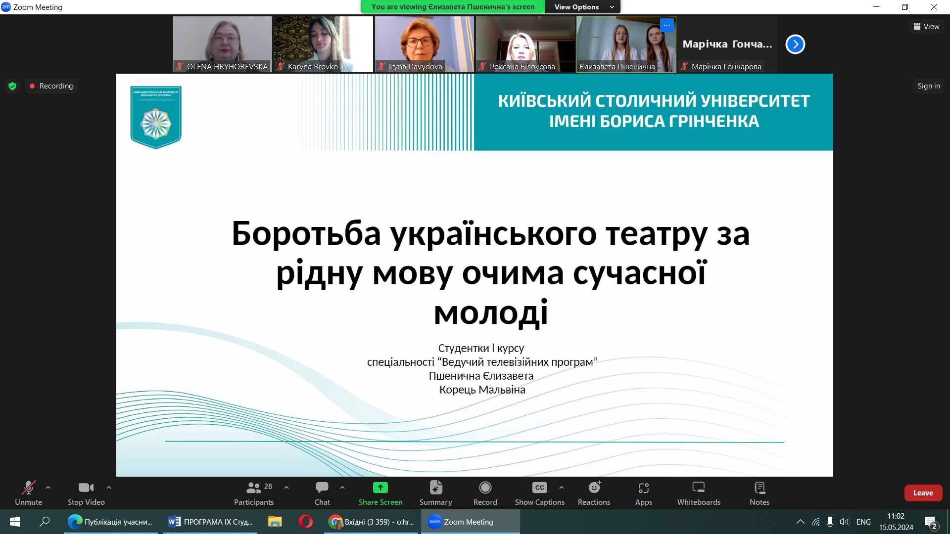 Університет Грінченка на конференції представили: студентка 4 курсу бакалаврату спеціальності «Інформаційна, бібліотечна та архівна справа» Марічка Гончарова із виступом «Мобільні додатки в інформаційному обслуговуванні користувачів» (науковий керівник – професор кафедри інформаційних комунікацій, доктор наук із соціальних комунікацій, Олена Григоревська) та студентки 1 курсу бакалаврату спеціальності «Аудіовізуальне мистецтво та виробництво» Мальвина Корець та Єлизавета Пшенична із презентацією проєктного дослідження «Боротьба українського театру за рідну мову очима сучасної молоді» (науковий керівник – доцент кафедри інформаційних комунікацій, Заслужена артистка України Руслана Новикова).