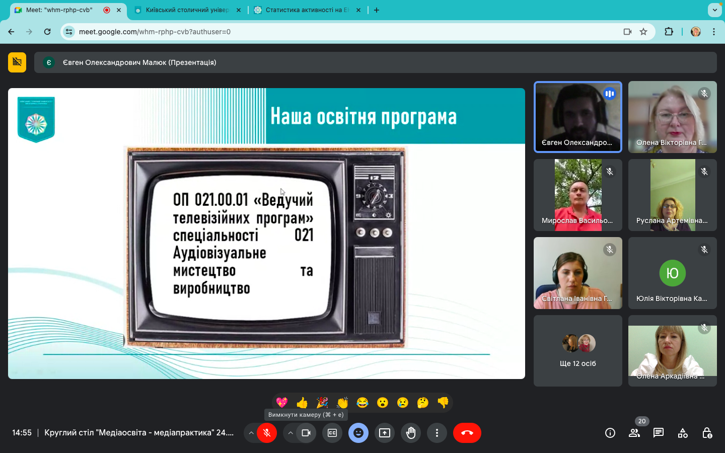 – концептуальний виступ Євгена Малюка, кандидата культурології, гаранта ОП «Ведучий телевізійних програм» Київського столичного університету імені Бориса Грінченка, присвячений питанню розвитку фахових якостей майбутніх спеціалістів медіасфери;