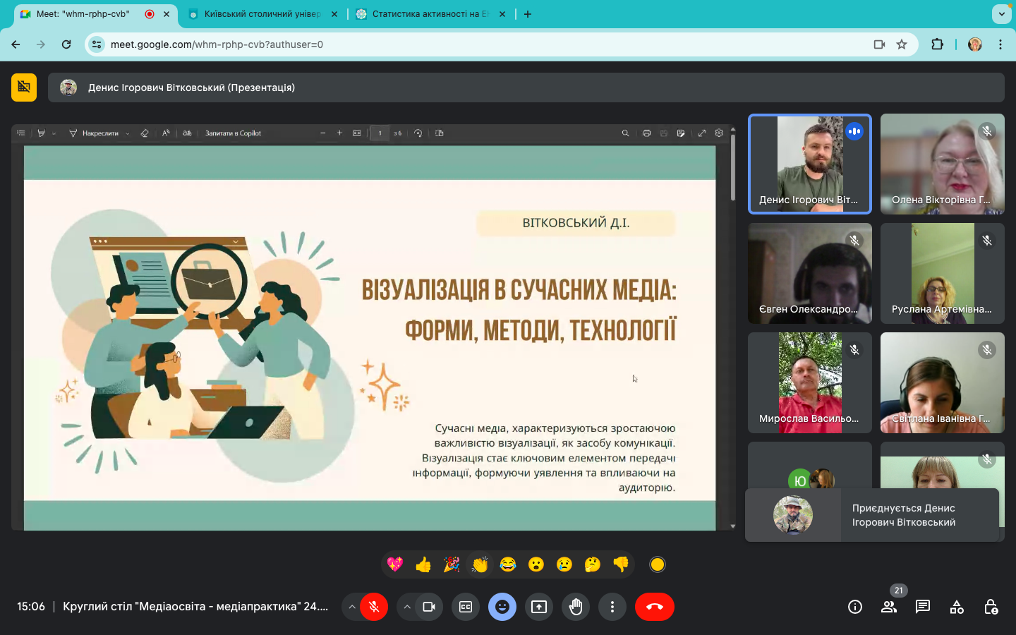 – виступ Дениса Вітковського, старшого викладача кафедри інформаційних комунікацій, присвячений методам і технологіям візуалізації в сучасних медіа.