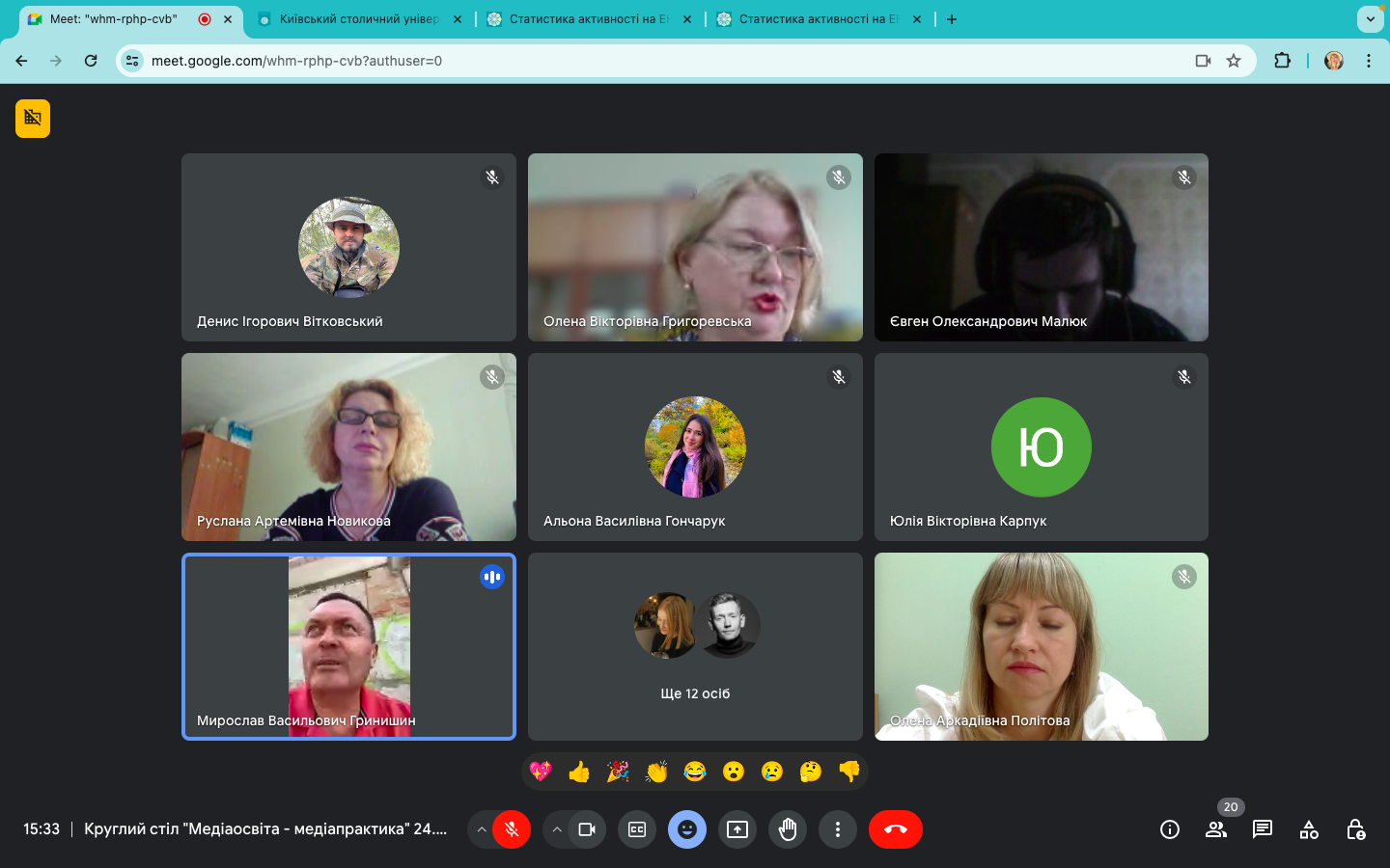 З вітальним словом до учасників зустрічі звернулися Олена Політова, завідувач кафедри інформаційних комунікацій Київського столичного університету імені Бориса Грінченка, і В’ячеслав Кудлай, завідувач кафедри інформаційної діяльності Маріупольського державного університету:
