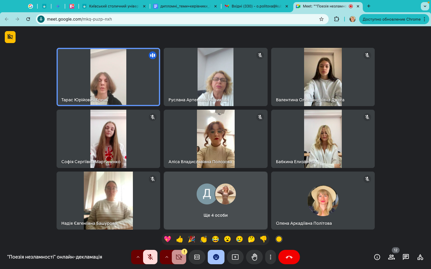 30 вересня відбувся надзвичайно світлий і проникливий онлайн-захід поетичної шани "Поезія незламності", організований доцентом кафедри інформаційних комунікацій Новиковою Русланою Артемівною разом зі студентами 1 курсу ОП «Ведучий телевізійних програм».