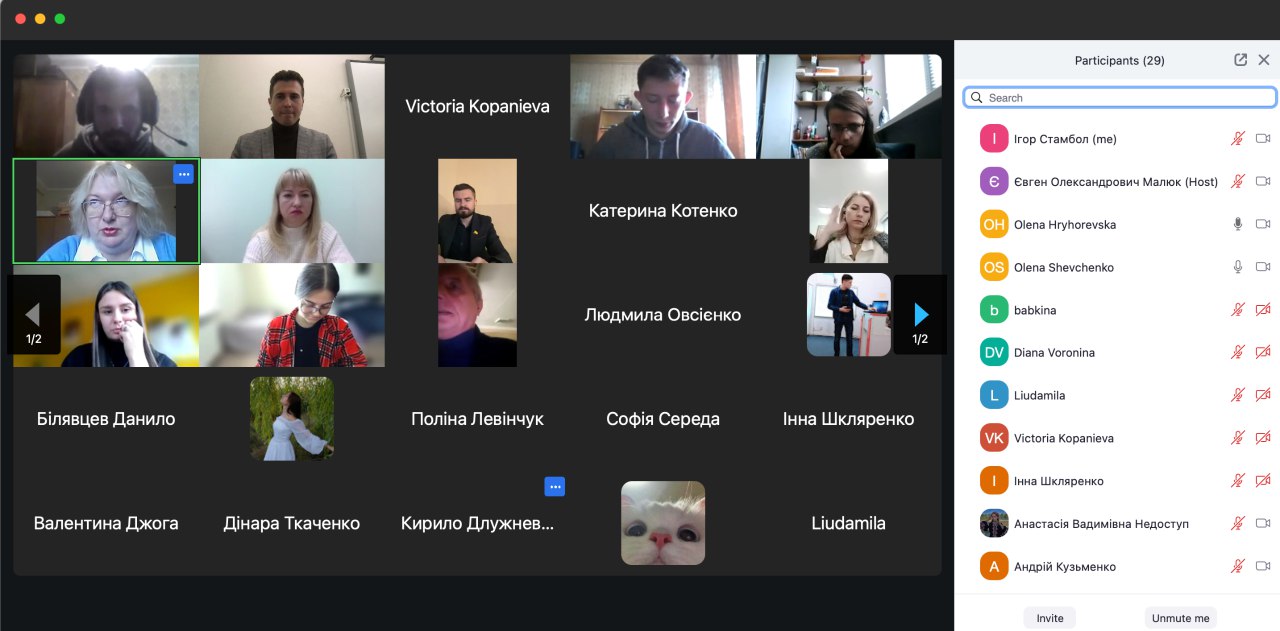 Модератори заходу (Олена Григоревська, професор кафедри інформаційних комунікацій; Ігор Стамбол, доцент кафедри інформаційних комунікацій; Євген Малюк, старший викладач кафедри інформаційних комунікацій) сприяли створенню творчої атмосфери проведення дебатів між двома командами учасників, до складу яких входили представники обох закладів освіти. Історію створення та перспективи використання технологій ШІ окреслив для учасників дебатів Олексій Макаров, старший викладач кафедри інформаційної діяльності та медіакомунікацій НУОП.