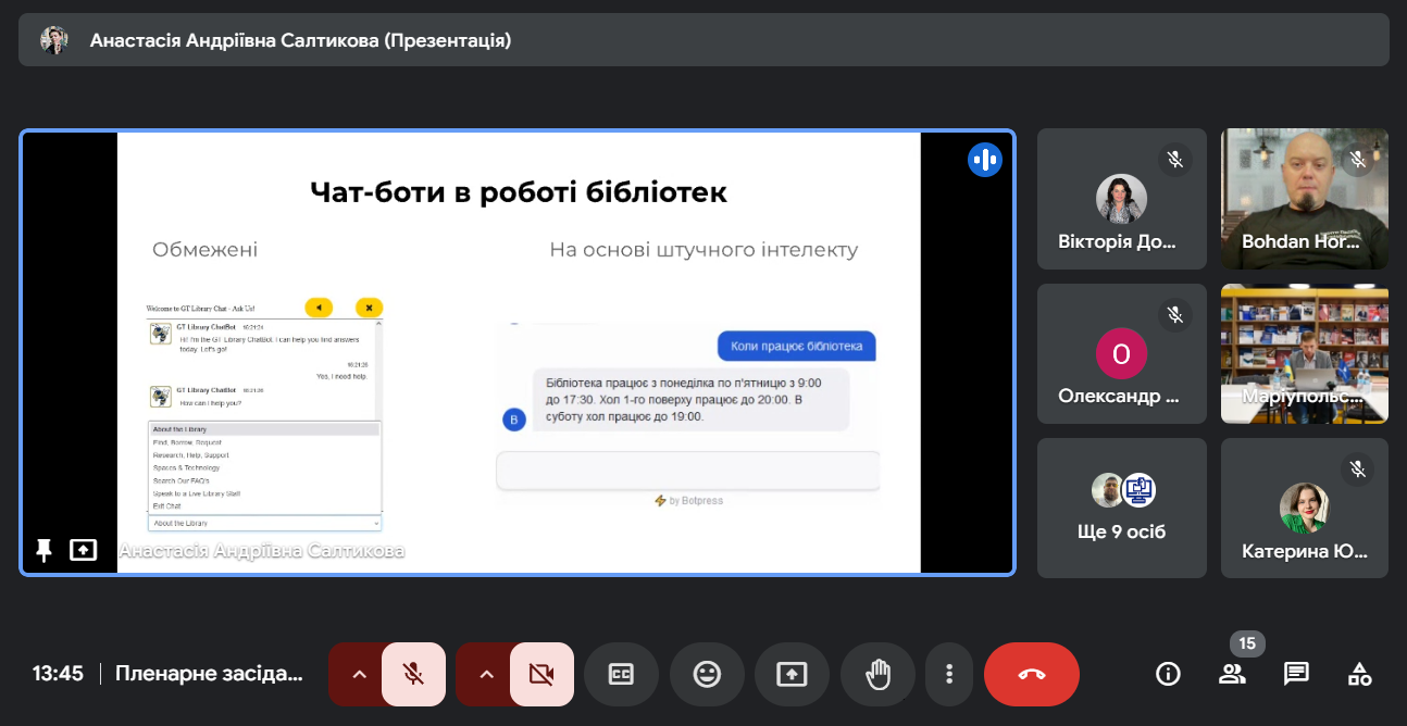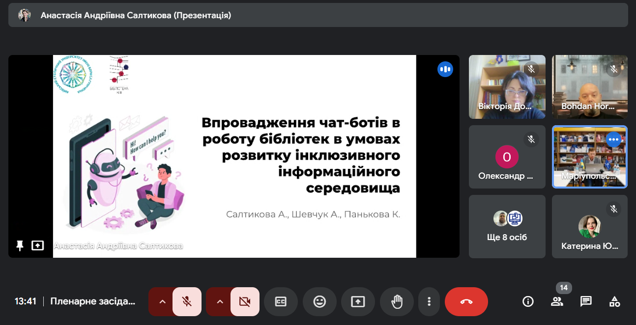 Подія проходила у форматі наживо та онлайн, що дало змогу зустрітися фахівцям інформаційної сфери у незламному Університеті для обговорення актуальних питань інформаційної науки. На пленарному засіданні з вітаннями до професійної спільноти звернулися завідувач кафедри інформаційних комунікацій КСУБГ Олена Політова і професор цієї кафедри Олена Григоревська. Вони презентували сучасні видання до фонду Бібліотеки університету.