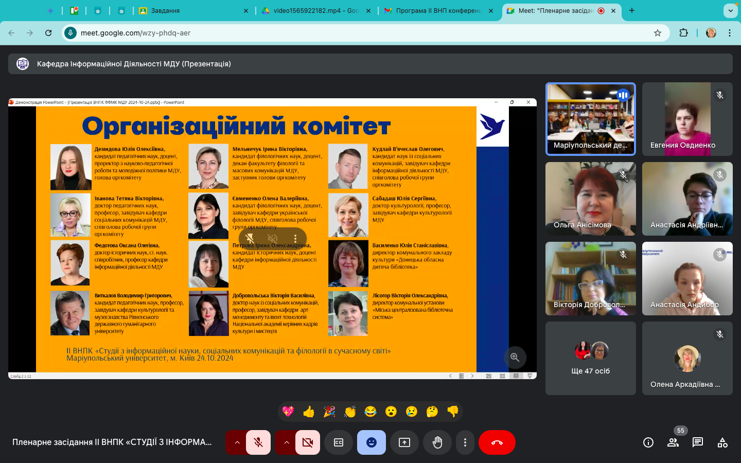 24 жовтня 2024 року у Маріупольському державному університеті на кафедрі інформаційної діяльності відбулася ІІ Всеукраїнська науково-практична конференція з міжнародною участю «Студії з інформаційної науки, соціальних комунікацій та філології в сучасному світі».