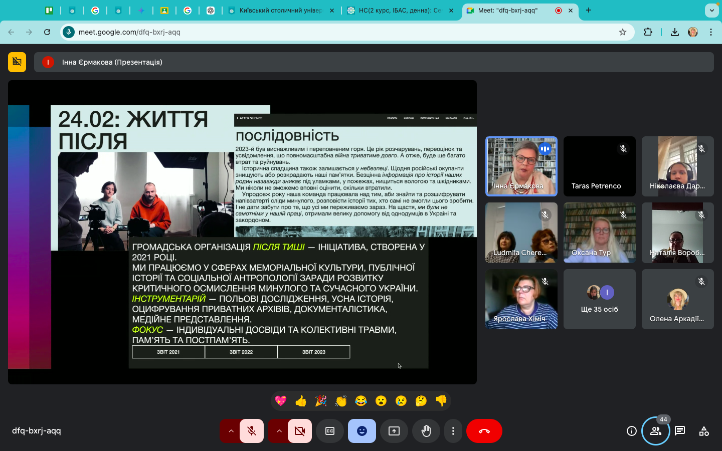 19 листопада 2024 року студенти групи ІБАС-1-23-4.0 разом із Оленою Політовою, завідувачем кафедри інформаційних комунікацій, долучилися до лекції Єрмакової Інни, наукової співробітниці Національного музею історії України у Другій світовій війні на тему «Найбільш документована війна. Музейний вимір».