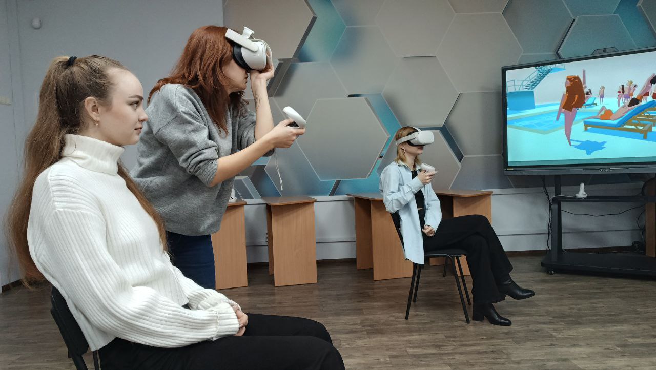 Ця технологія є популярною у сучасному цифровому мистецтві, зокрема у відеоіграх. Викладач кафедри інформаційних комунікацій Євген Малюк під час заняття у Цифровому хабі провів дискусію про віртуалізацію суспільства, виразні можливості VR та роль цифрових медіа в мистецтві. За технічної підтримки працівниці НДЛ цифровізації освіти Ірини Коваленко студенти ознайомилися зі специфікою роботи VR-гарнітури та додатками, які було підібрано для заняття. Для першого досвіду з навігацією по віртуальному світу було обрано інтерактивний застосунок Theatre Elsewhere, після чого студентам було запропоновано спробувати себе у ролі митців у програмі для створення графіки у віртуальному середовищі Tilt Brush. У студентів це був перший досвід роботи з віртуальною реальністю, і судячи з того, що більшість продемонстрували бажання повернутися в Цифровий хаб знову, цей досвід був успішний.