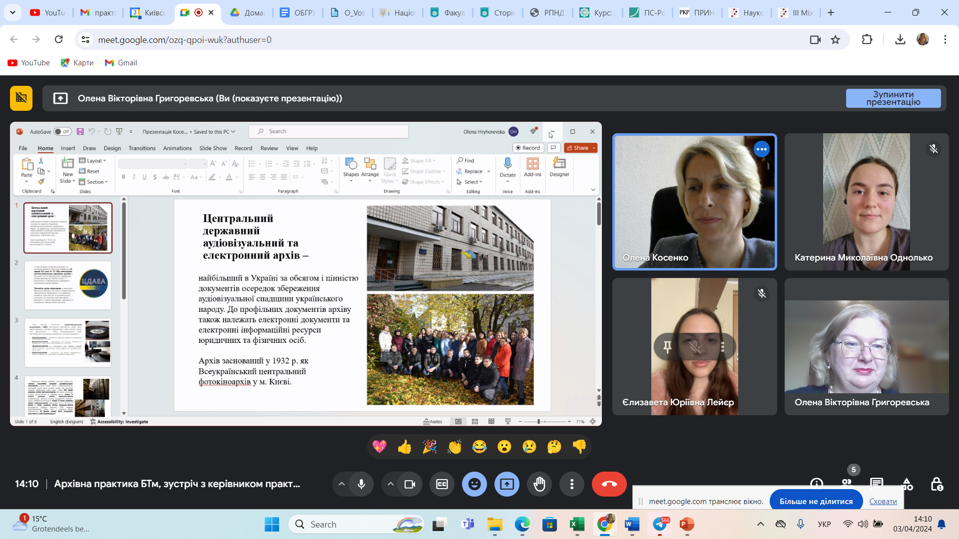 У межах виконання завдань першого етапу виробничої практики 3 квітня 2024 р. відбулася ознайомча онлайн-лекція заступника директора ЦДАЕА Косенко О.В. "Формування Національного архівного фонду аудіовізуальними документами та електронними інформаційними ресурсами".
