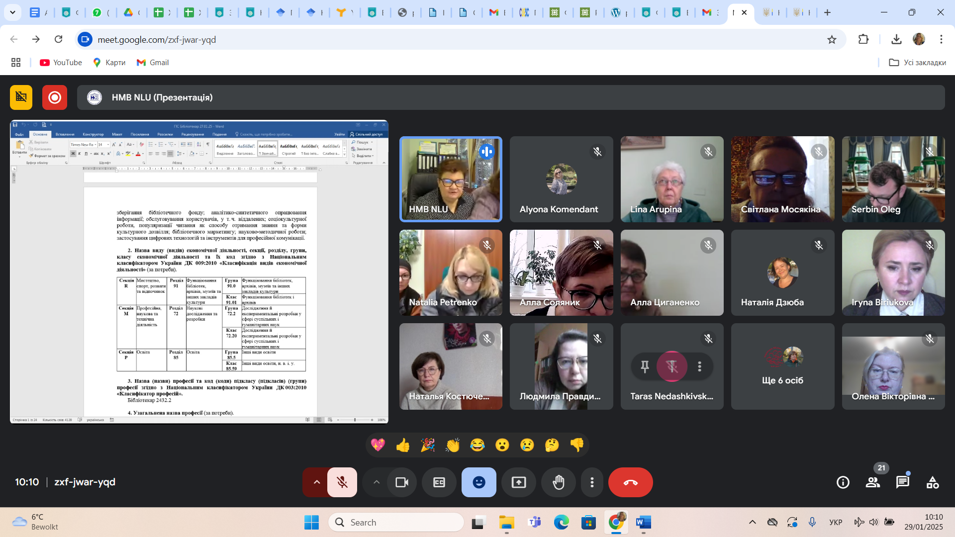 29 січня 2025 р. відбулася чергова зустріч фахівців з розроблення проєкту професійного стандарту «Бібліотекар». Робоча група була сформована з ініціативи Державного агентства України з питань мистецтв та мистецької освіти 07 березня 2024 р. Університет Грінченка та секцію з бібліотечно-інформаційної освіти Української бібліотечної асоціації у складі робочої групи представляє професор кафедри інформаційних комунікацій, доктор наук із соціальних комунікацій О.В. Григоревська.